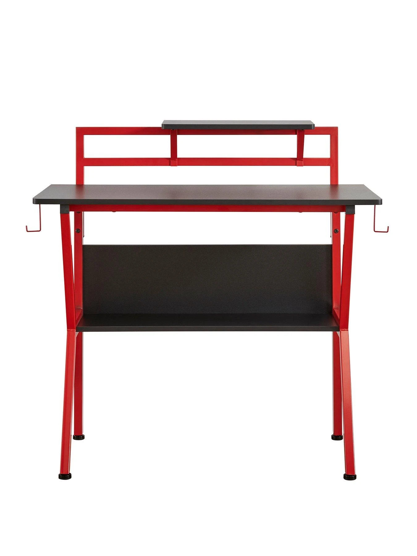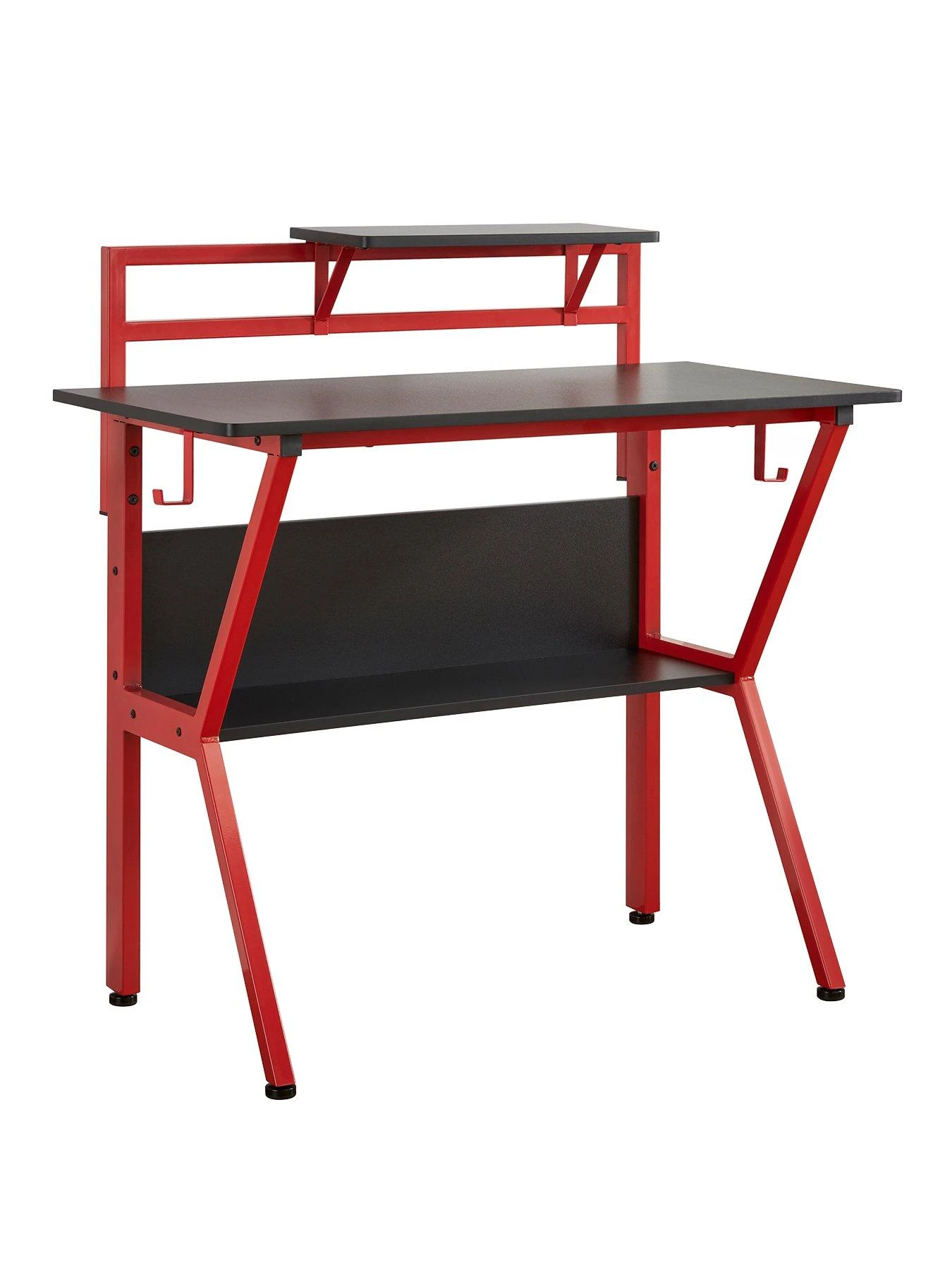 Featuring a cool red and black colour combination, its steel tube frame has a glossy finish for added eye-catching style. A raised monitor platform ensures ergonomic seating, while a low shelf offers extra space.