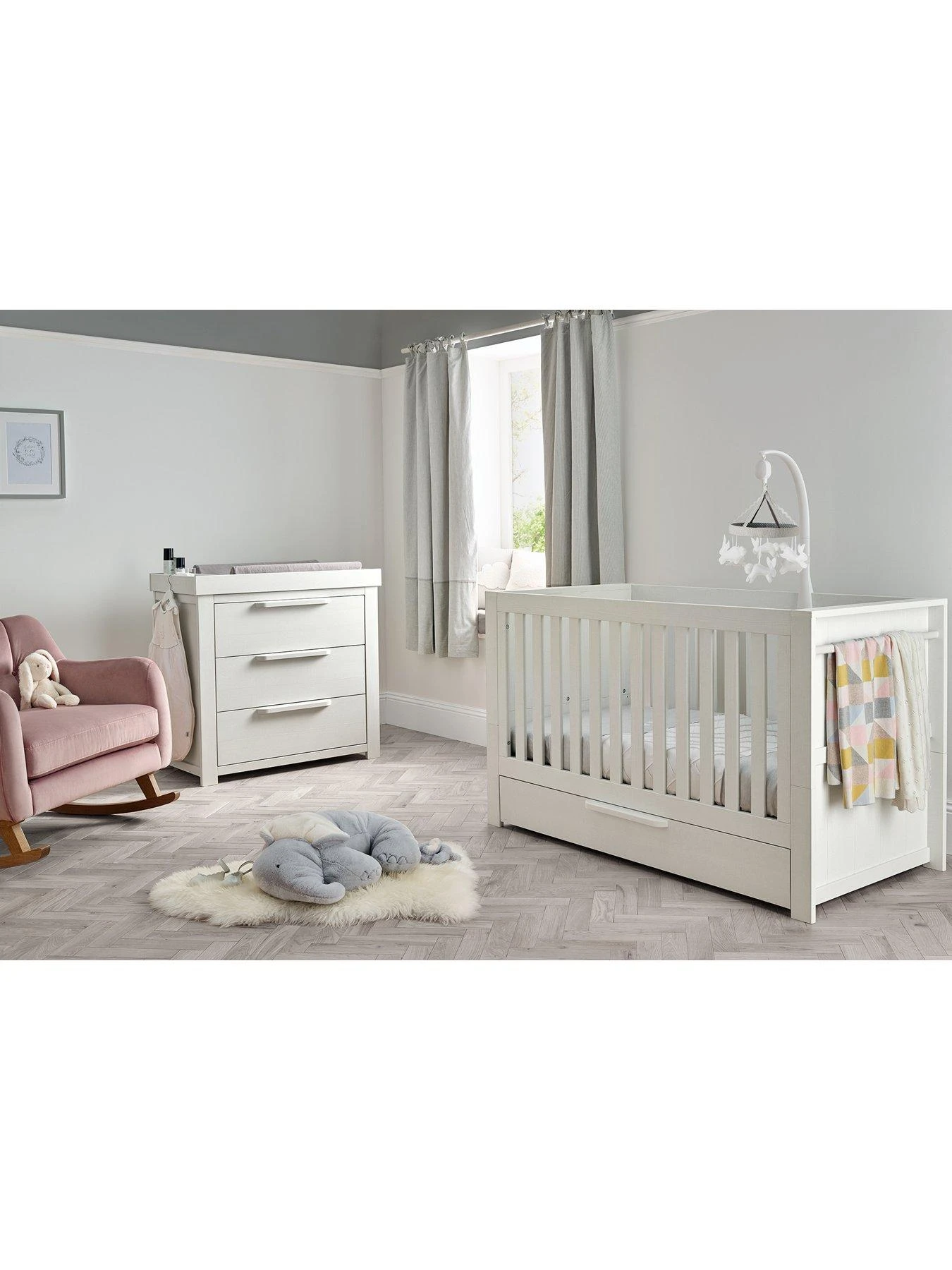 This cotbed converts into both a toddler bed and day bed, for long-lasting use. There are 2 base height positions making it even easier to access baby and safer than a traditional drop-side cot. What’s more this cotbed features a soft close underbed storage for extra space.