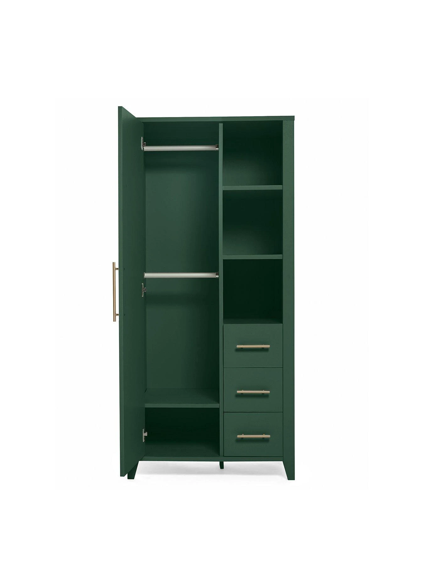 - On-trend forest green finish with brushed metallic handles