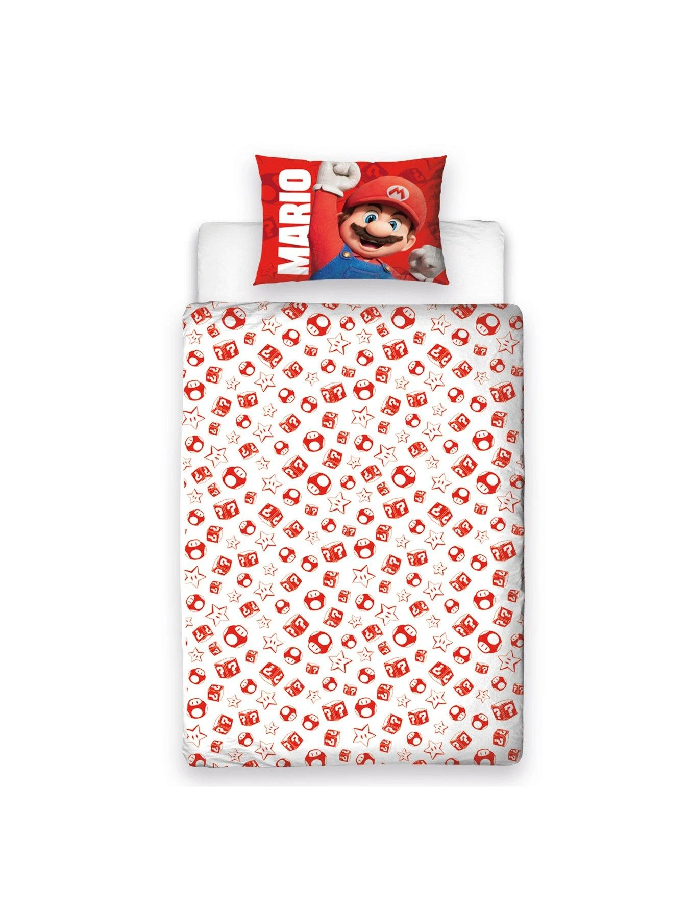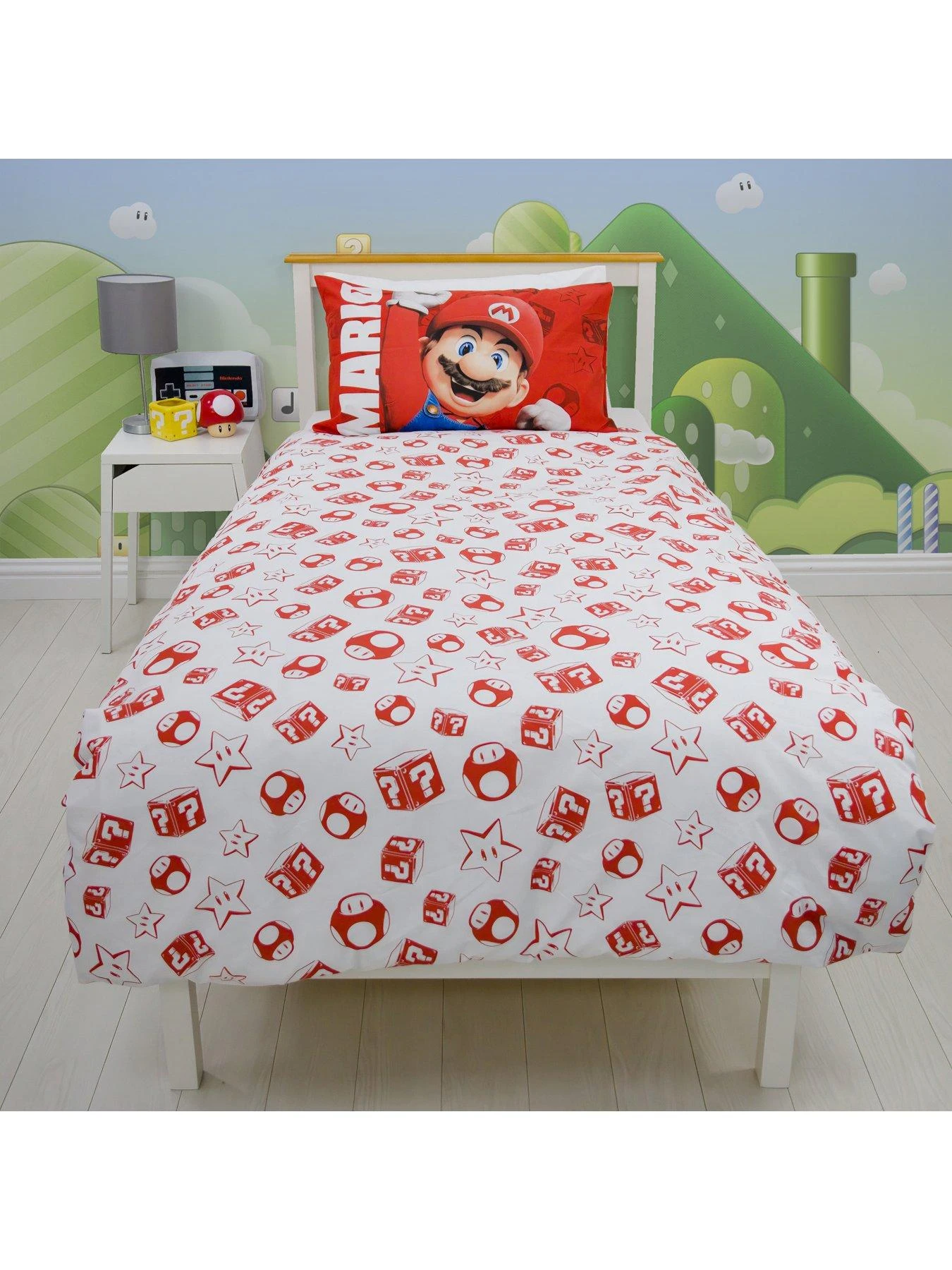Transform their sleep space into the Mushroom Kingdom with this awesome single duvet cover set from The Super Mario Bros Movie.