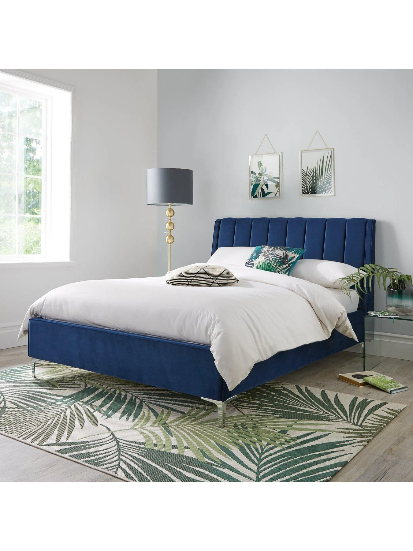 Designed with a modern low footend, it’s wrapped in a sumptuously soft fabric that comes in an elegant navy shade – perfect for adding a pop of colour to your sleep space.