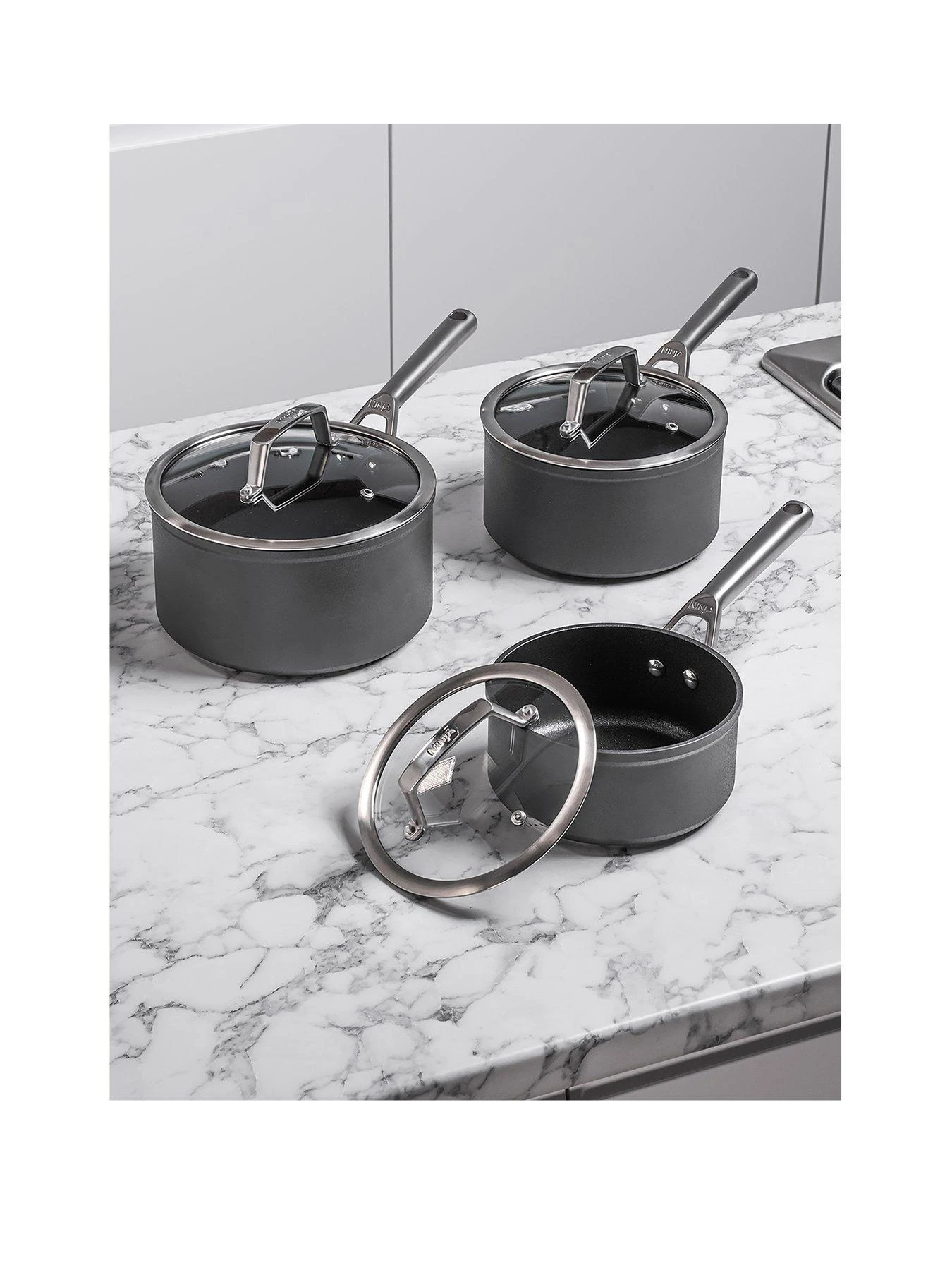 - 3-Piece Pan Set – 16cm, 18cm & 20cm saucepans with lids