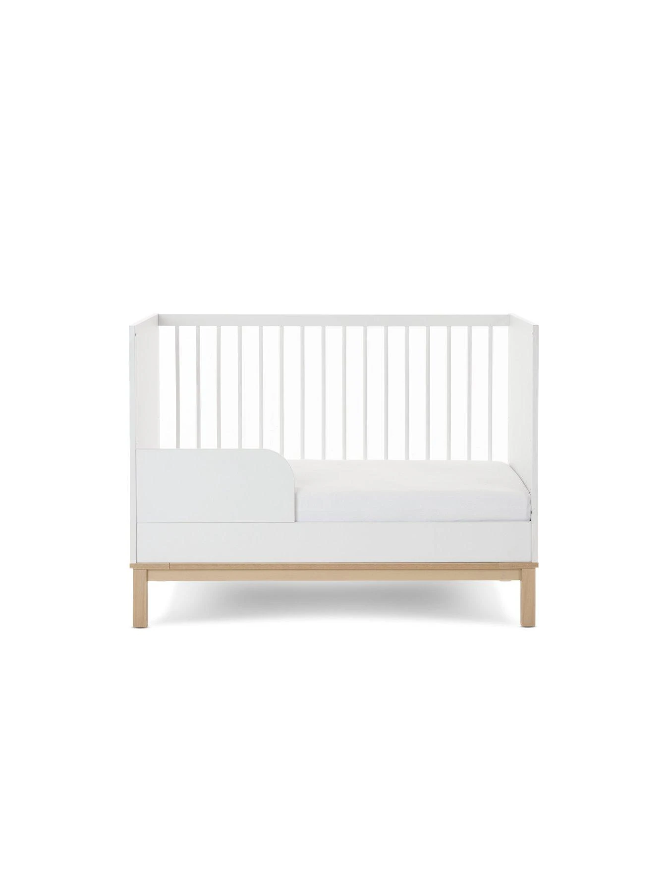 - Side is removable for effortless transformation into a toddler bed