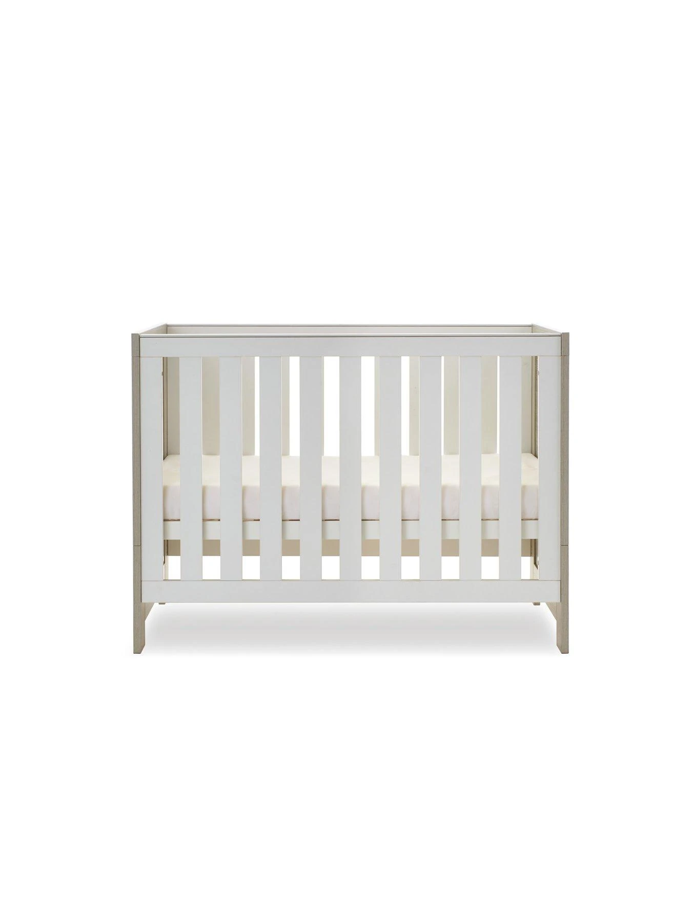 For the smaller nursery, Obaby have created the Nika Mini cot bed. More compact than the full-sized Nika cot bed without compromising on features, the Nika Mini has 3 mattress base positions, the highest allowing you to put down and pick up your newborn without straining your back through unnecessary bending. As your little one starts to develop and become more active, the mattress base can then be lowered by a further two positions, keeping them safe and secure at all times. Teething rails also protect their gums and delicate first teeth. When your little one is standing confidently, the Nika can be easily transformed into a stylish toddler bed that still offers the familiarity they are used to. The Nika Mini requires an Obaby 120 x 60cm mattress, available separately.