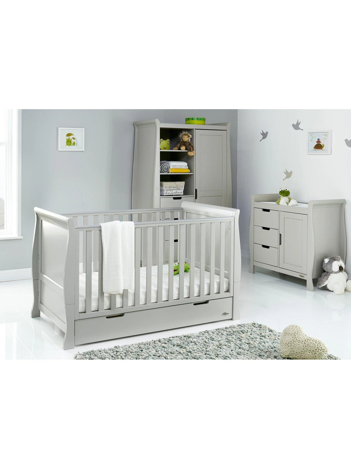 Obaby Stamford Classic Sleigh 3-Piece Room Set – create the perfect cosy and practical nursery for your baby.