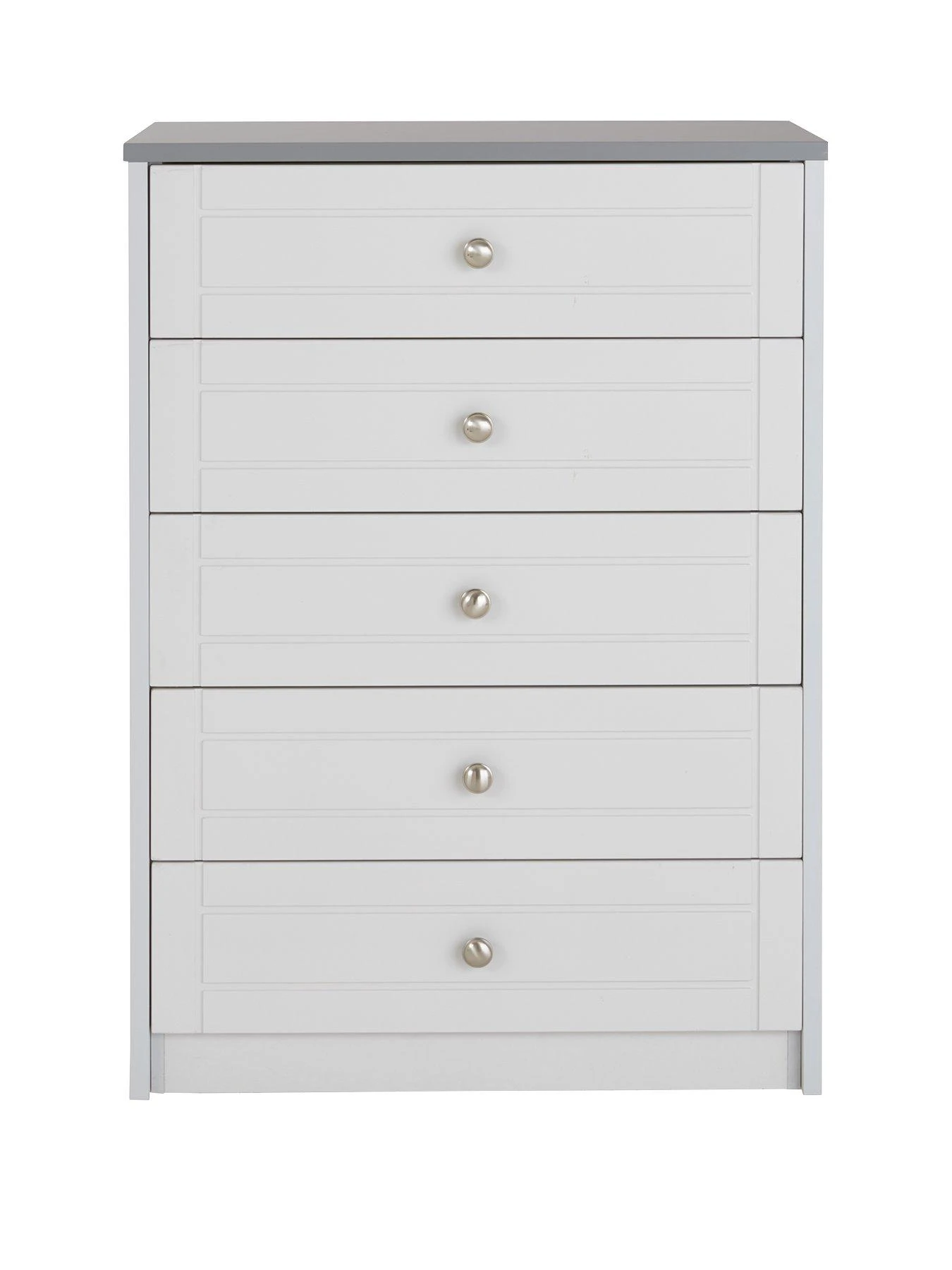 Alderley Ready Assembled Chest of 5 Drawers in White, Cream/Oak-Effect, Grey or Rustic Oak Effect/Taupe