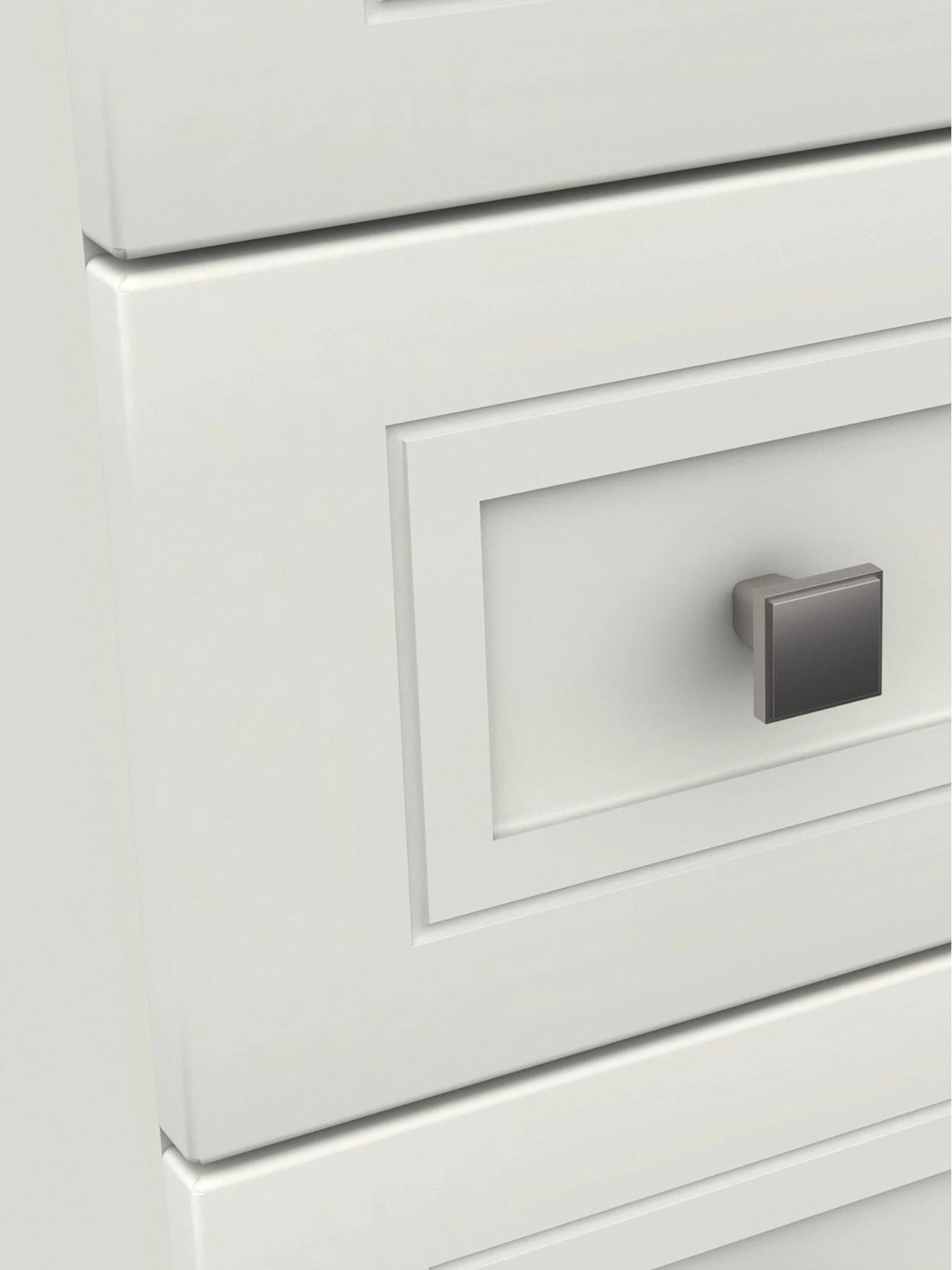 The drawer fronts on the chests are finished with a matching framed design, plus linen-look interiors and easy-glide metal runners that ensure a smooth opening. Completing this UK made furniture set are the square aluminium handles for a final note of style.