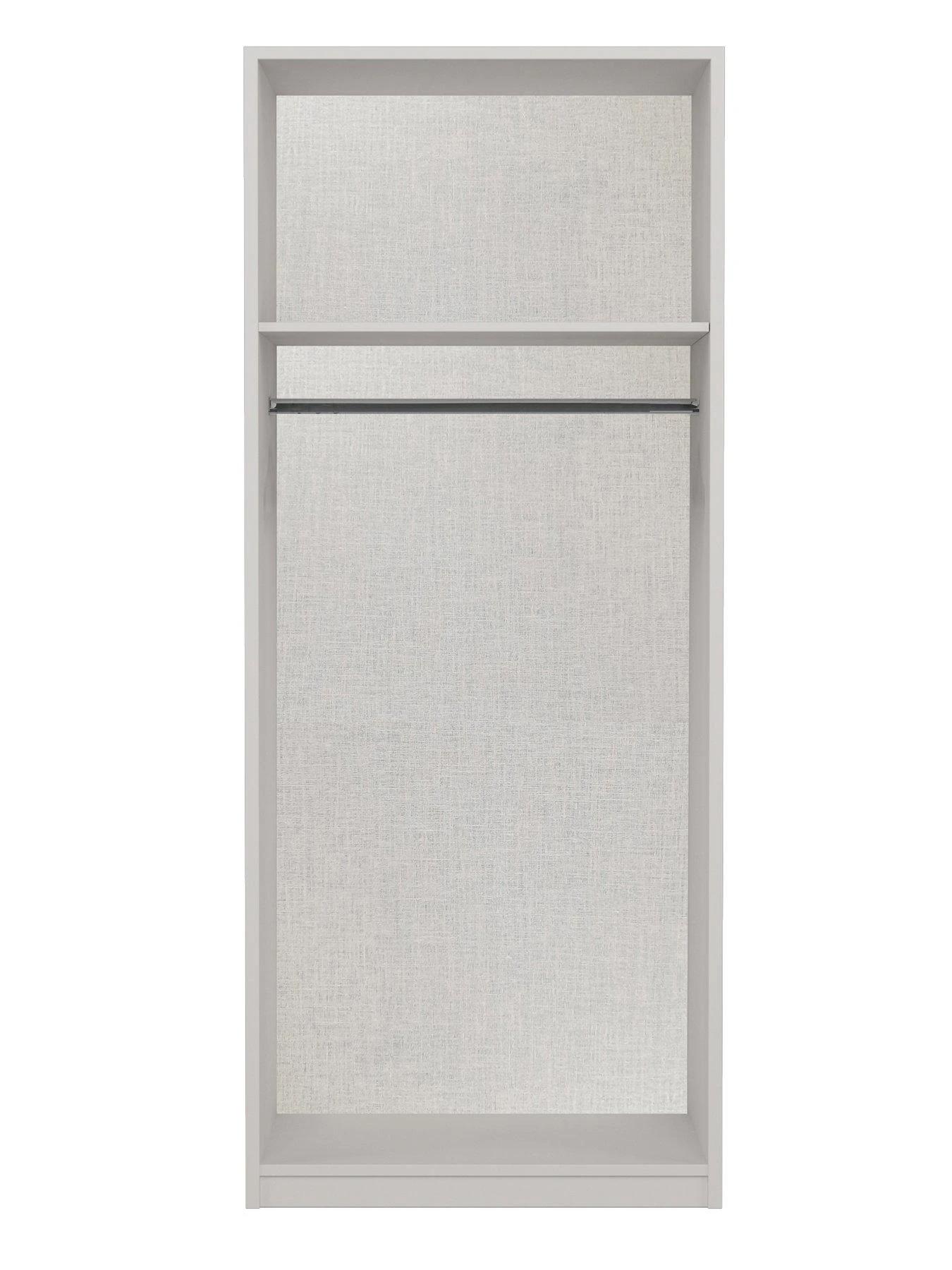 The linen-look backed interior boasts a hanging rail and high shelf for neat fashion storage. Completing this UK made furniture are the square aluminium handles for a final note of style, and it’s available in white.