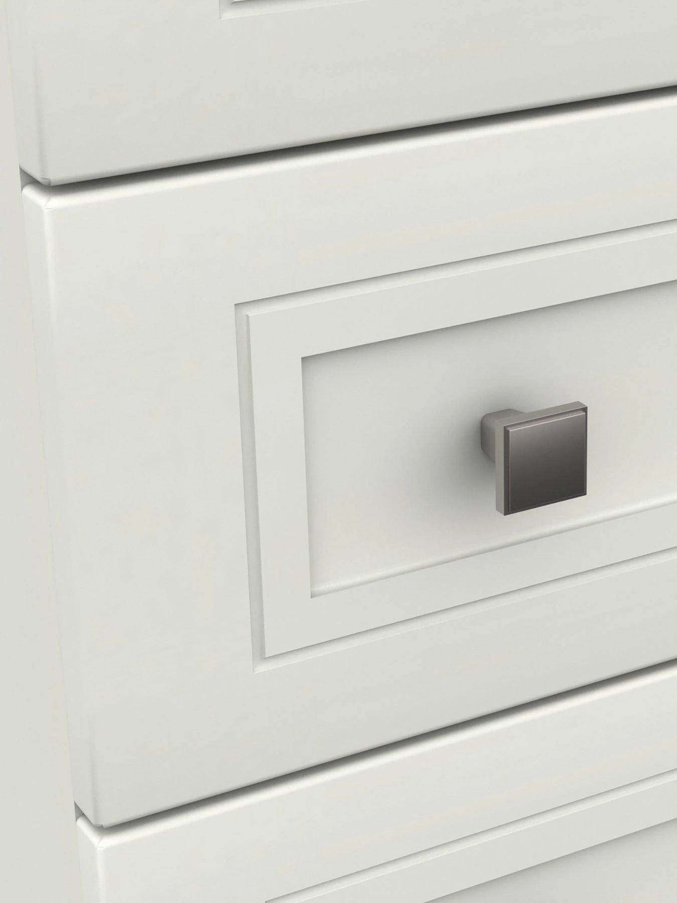 Available in white, its 8 drawer fronts feature a fashionable framed design, and they’re thoughtfully finished with square aluminium handles, linen-look interiors and metal runners for an easy-glide action.