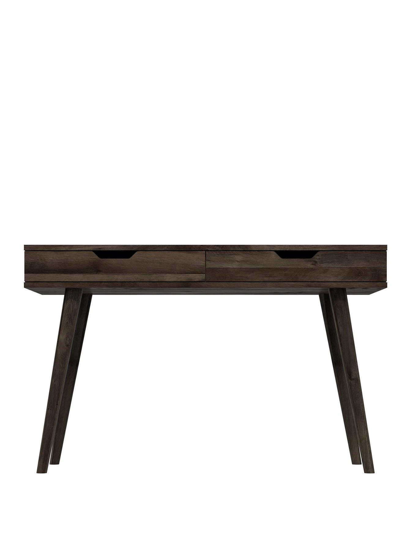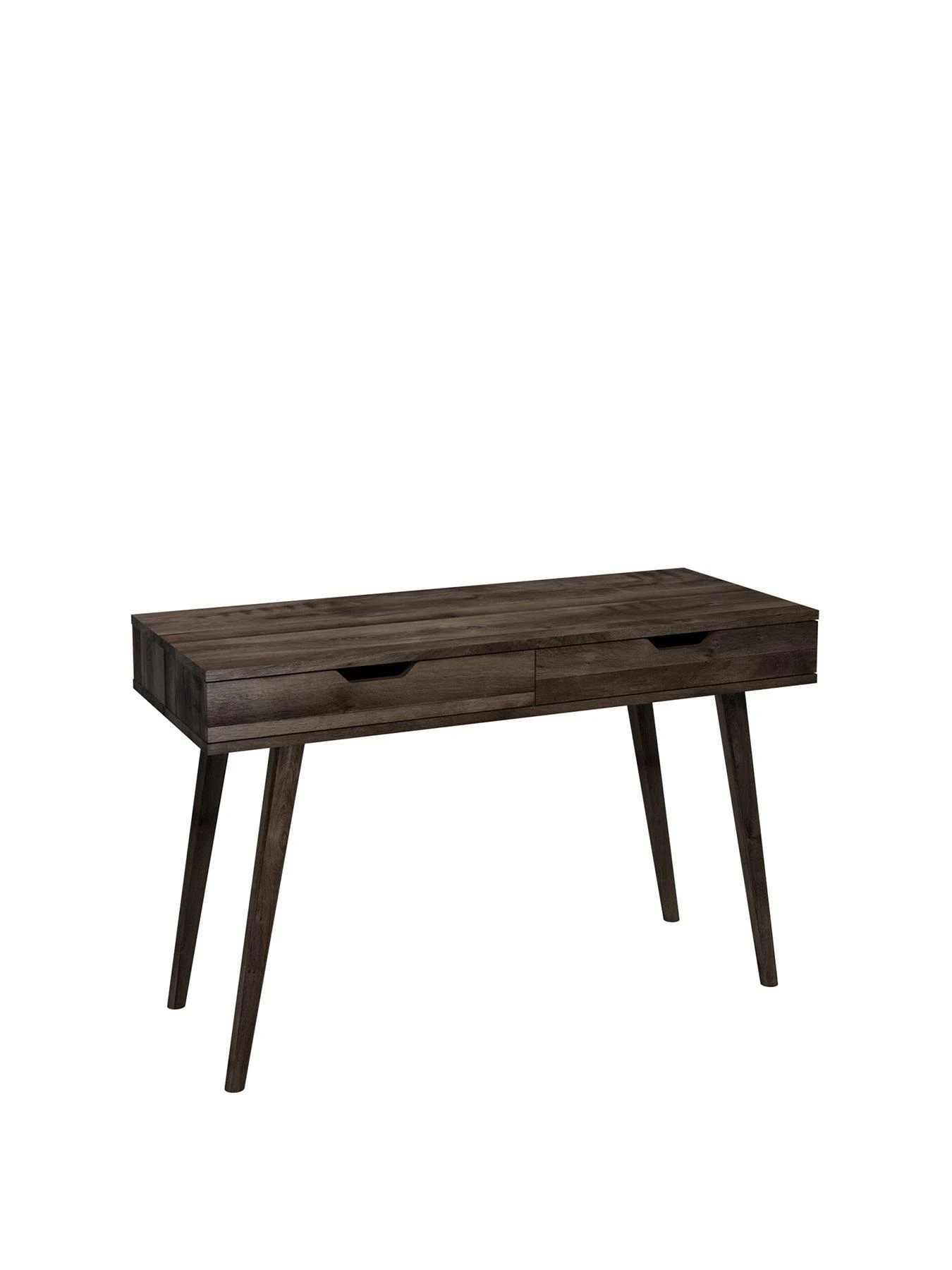 It sits on mid-century modern splayed legs and boasts a pair of drawers with modern cut-out handles – a handy hideaway for stationery and other office accessories. And to make life even easier it will arrive ready assembled so you can see the difference it makes to your home office right away.