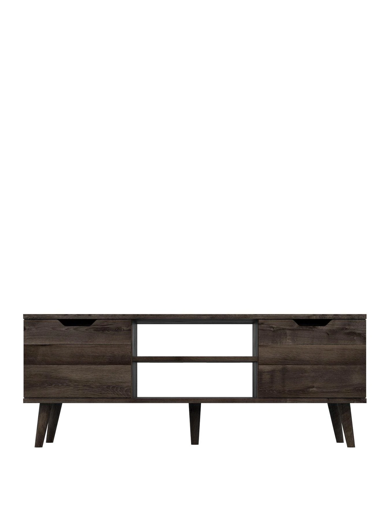 Two cupboards ensure it’s as practical as it is fashionable, giving you a handy hideaway for DVDs, video games, remotes and more. The doors are finished with cut-out handles, and the open shelving at the centre is the perfect platform for your peripherals.