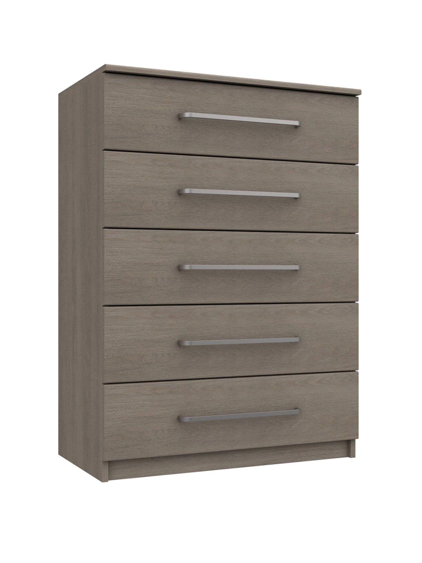 Reagon Ready Assembled Chest of 5 Drawers in Oak Effect or Dark Oak Effect