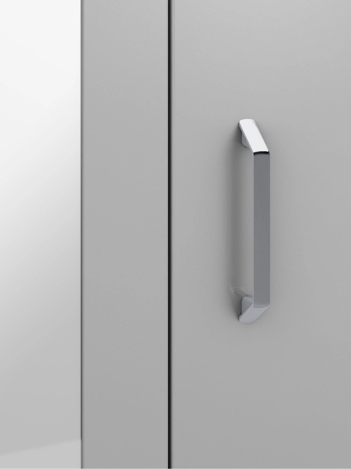 This ultra modern ready assembled four door wardrobe flaunts a fashionable high gloss finish that ensures the soft colour choice of dark grey and white really pops.