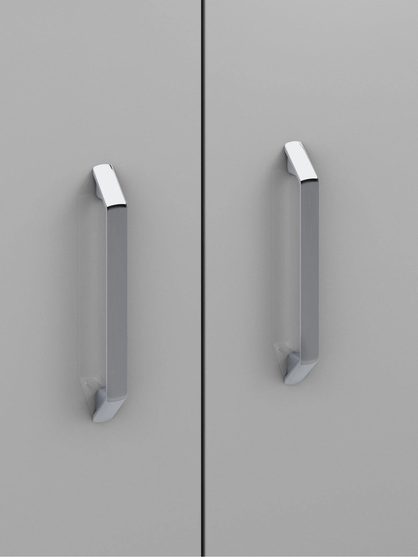 Flaunting a fashionable high gloss finish that ensures the soft colour choice of light grey, dark grey and white really pops, it’s accented with designer metal handles, while the doors hide a high shelf and metal hanging rail. Adjustable metal hinges allow for easy alignment on uneven floors.