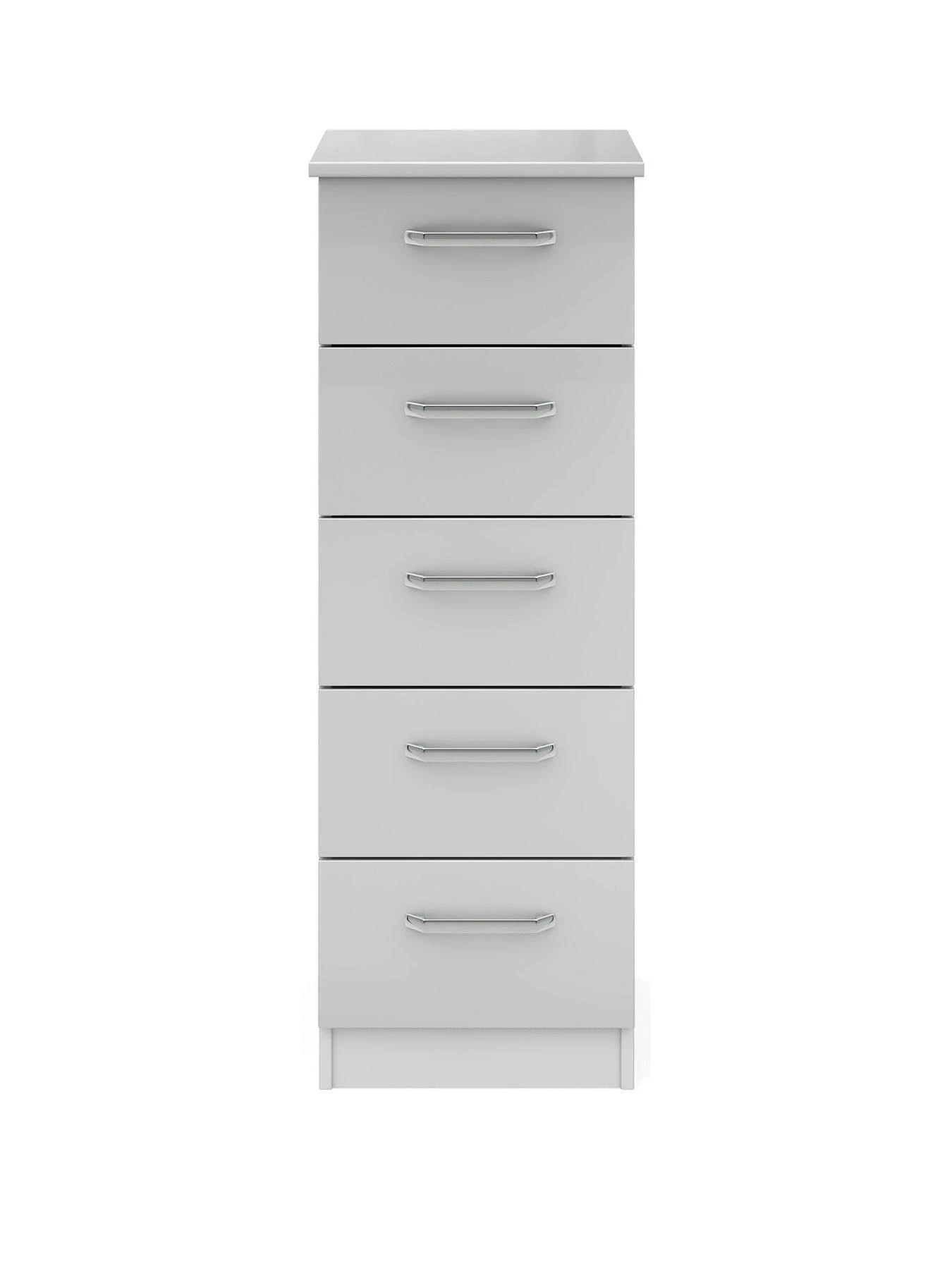 Sanford Ready Assembled High Gloss Narrow Chest of 5 Drawers in Dark Grey or White