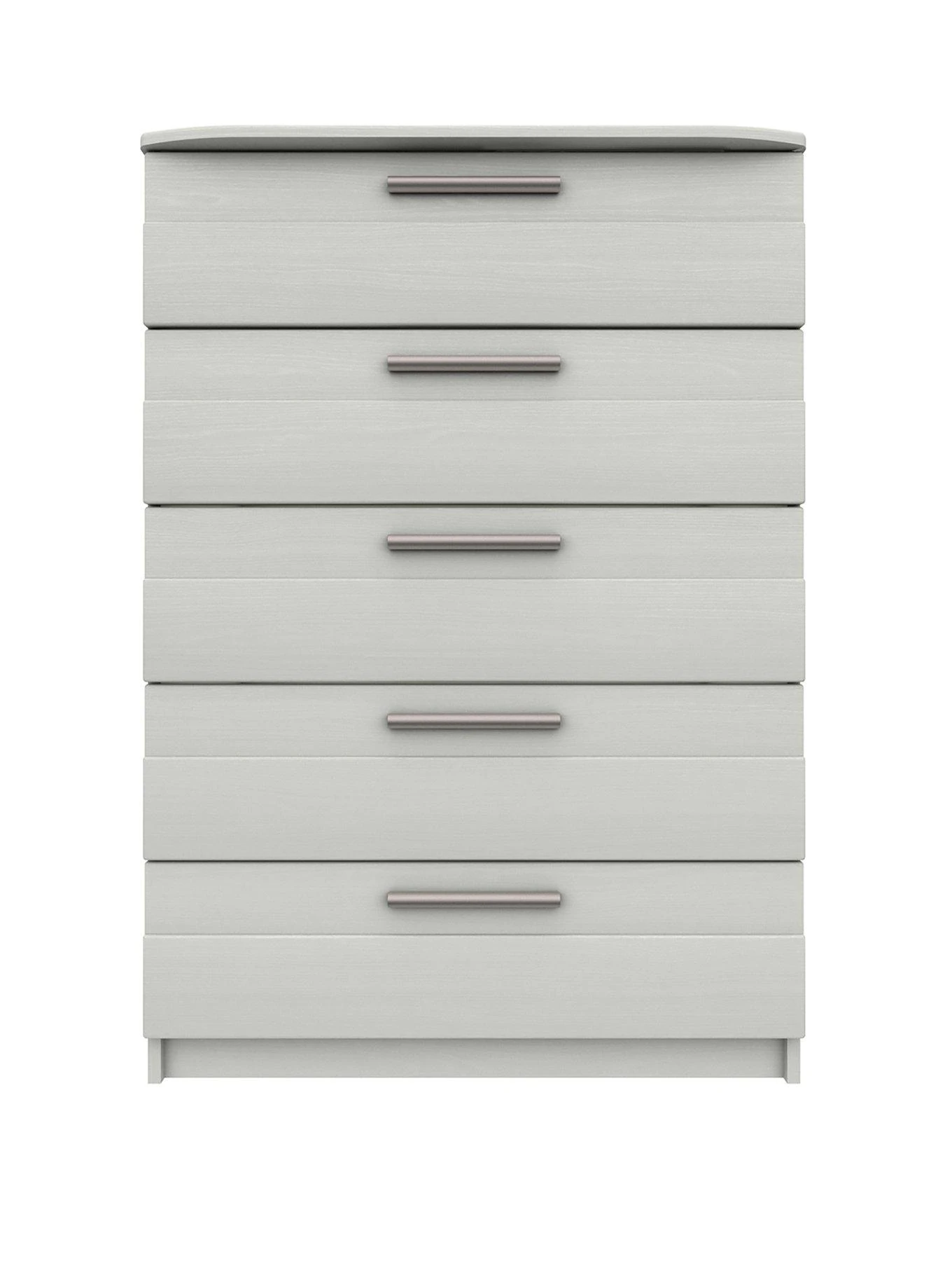 Taylor Ready Assembled Chest of 5 Drawers in Light Grey, Graphite and White – Made in the UK