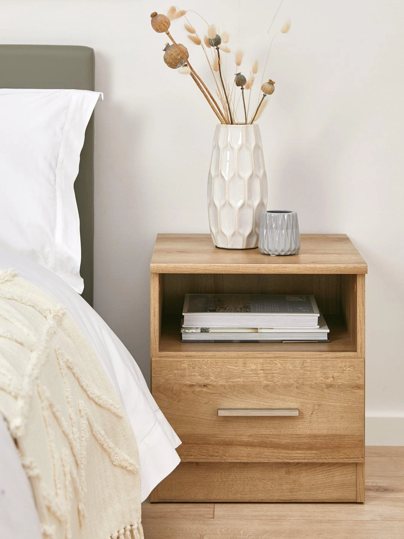 Panama 1 Drawer Bedside Cabinet in Grey, White or Oak Effect – FSC® Certified