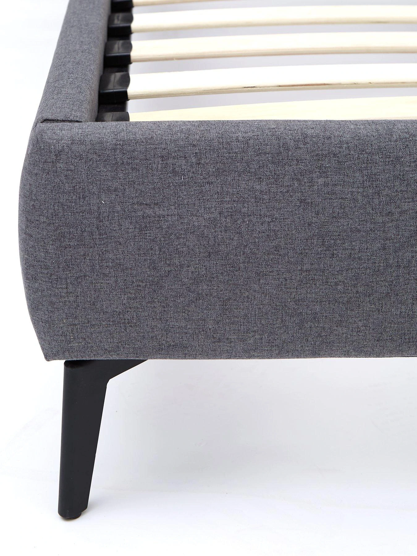 It’s finished with modern slimline black metal feet that raise it slightly off the floor, as well as sprung slats for comfortable mattress support (please note: mattress must be purchased separately).
