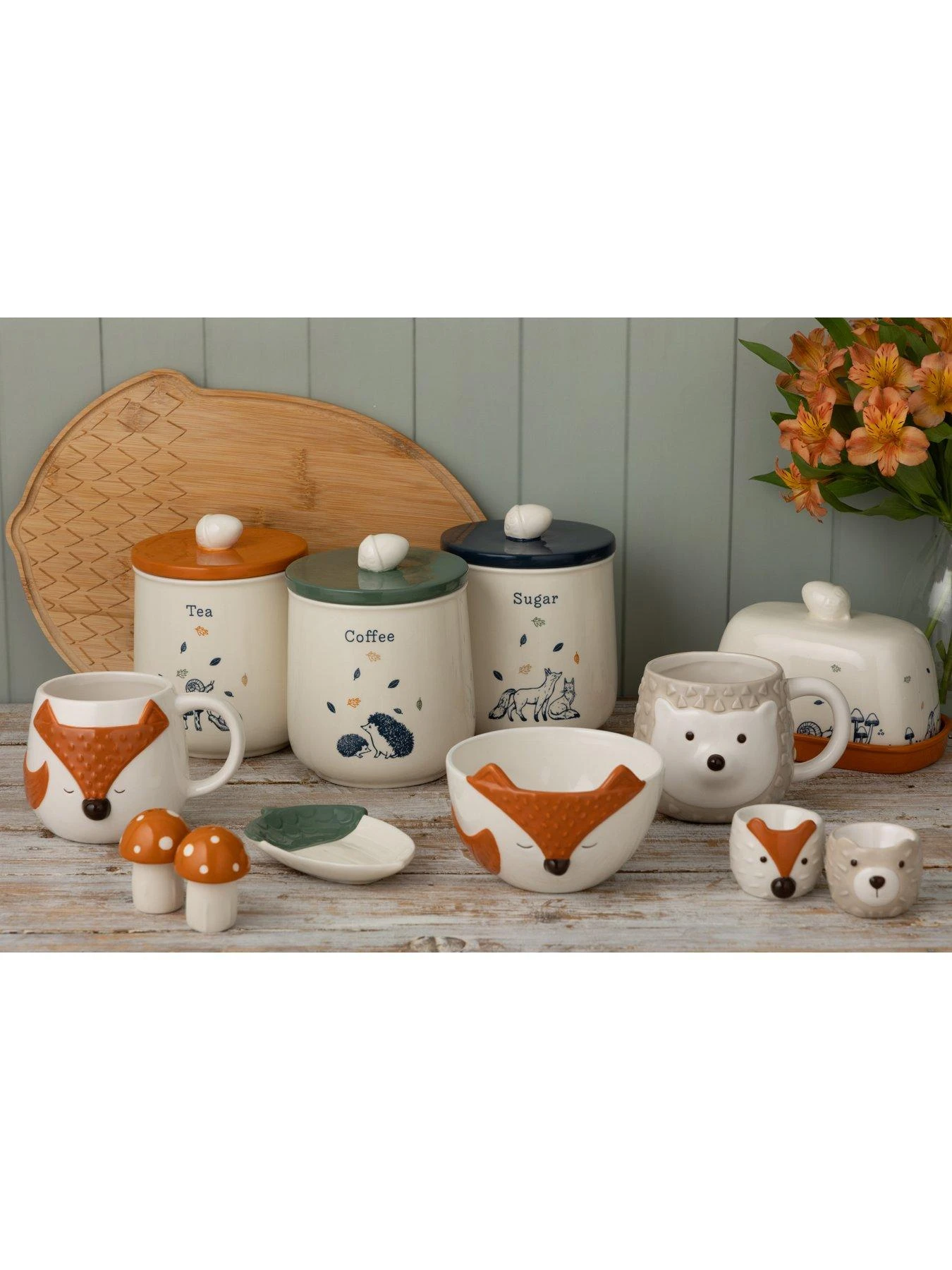 The Price & Kensington Woodland TCS storage jars feature novelty woodland illustrations in a hand drawn style, inspired by nature. The contemporary storage jar shape has been moulded from quality, durable ceramic and is the perfect storage solution with a generous 1 litre capacity. Featuring text detail on the front to clearly identify the contents, a novelty acorn handle and brightly coloured lid.