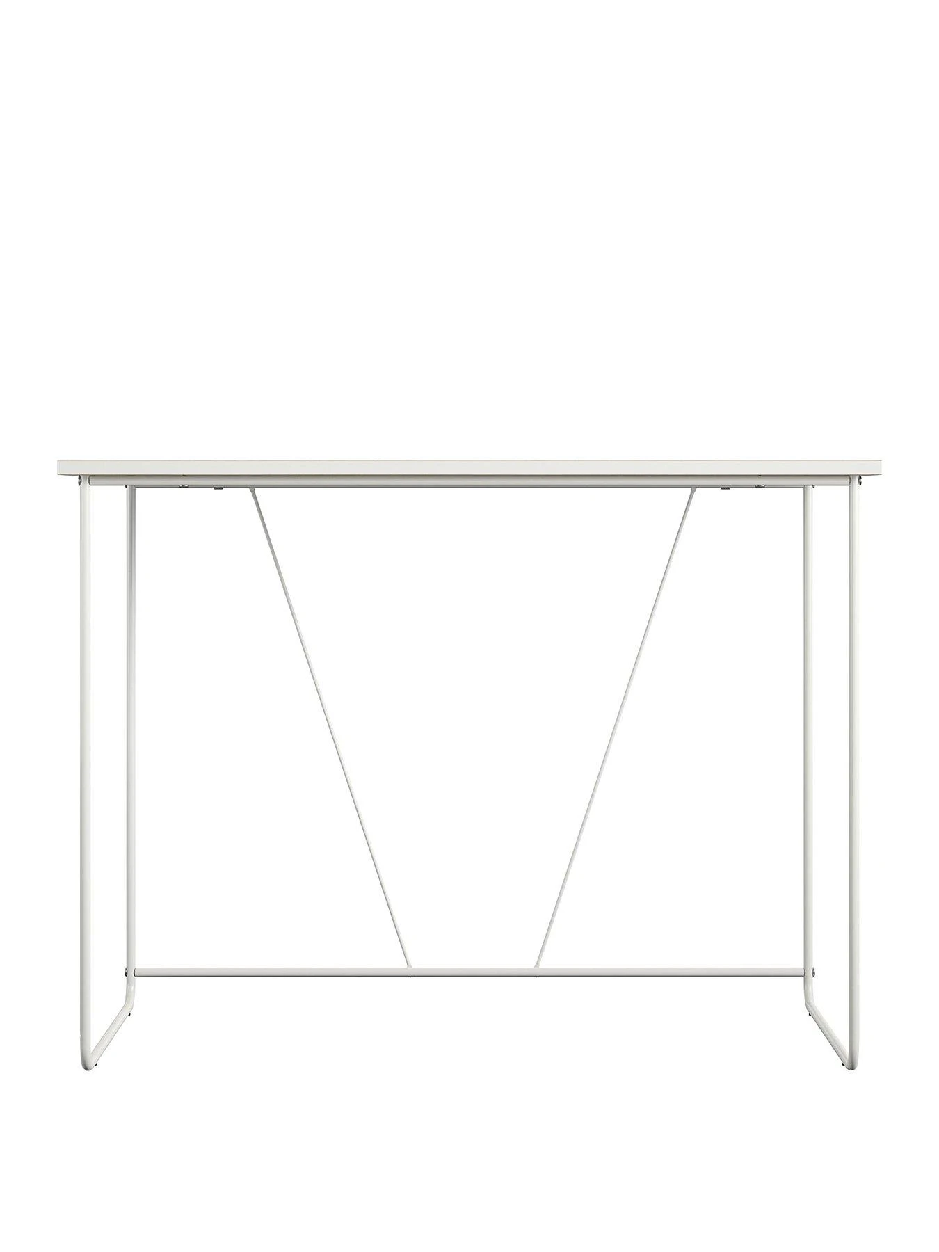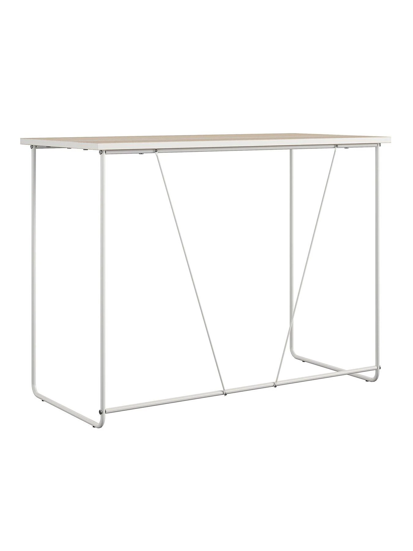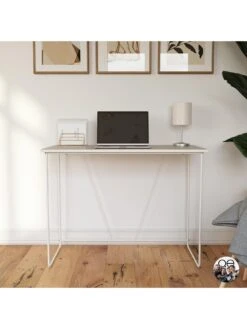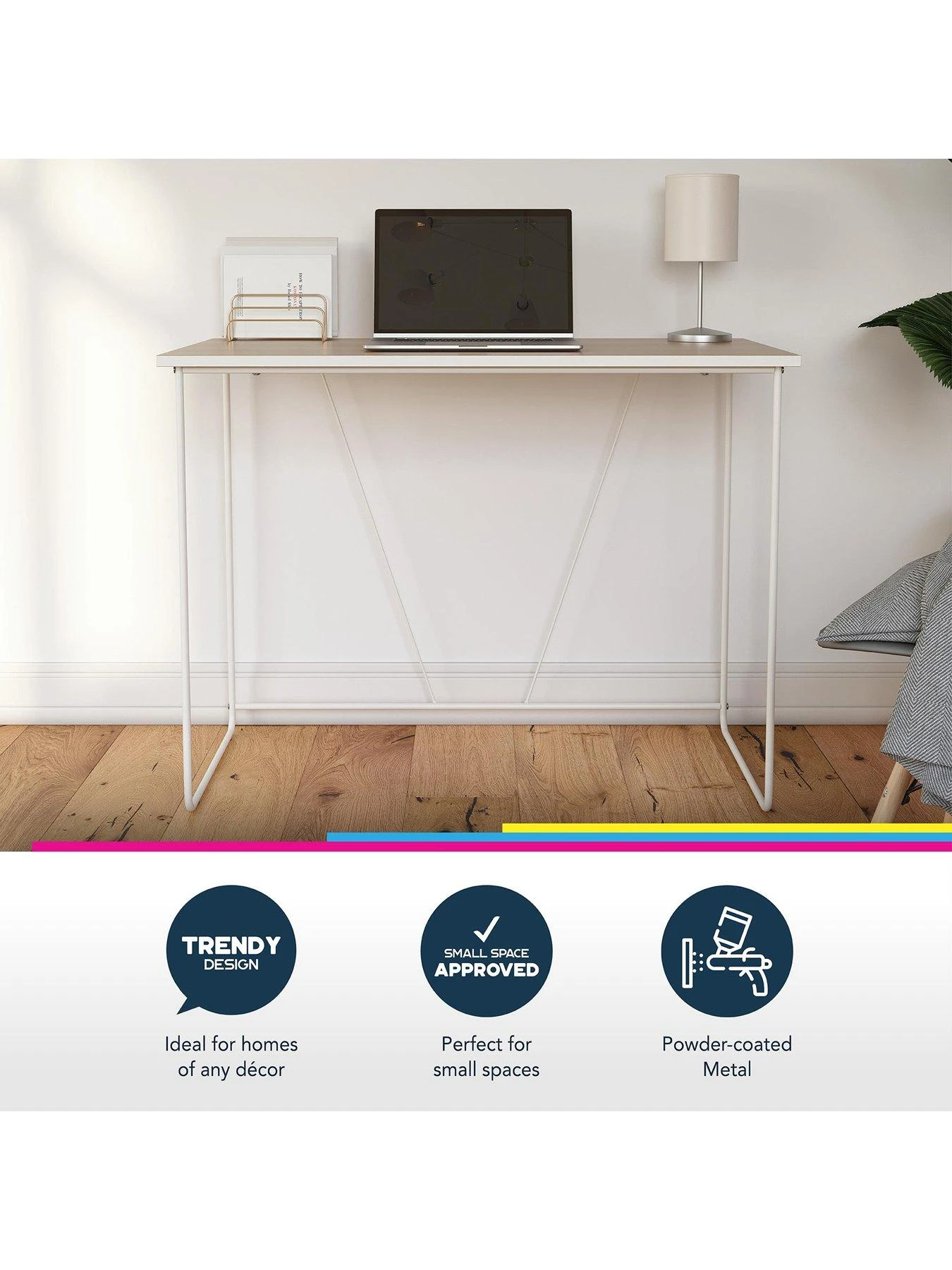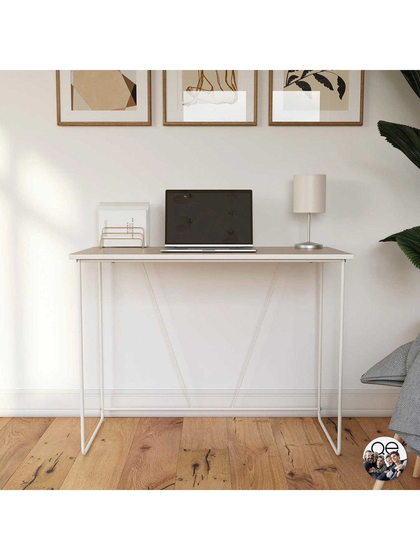 Also helping to enhance the compact design is the slimline powder coated metal frame which utilises clean straight lines. These are contrasted by the diagonal supports at the back, while the worktop contrasts in a natural coloured wood-effect finish.