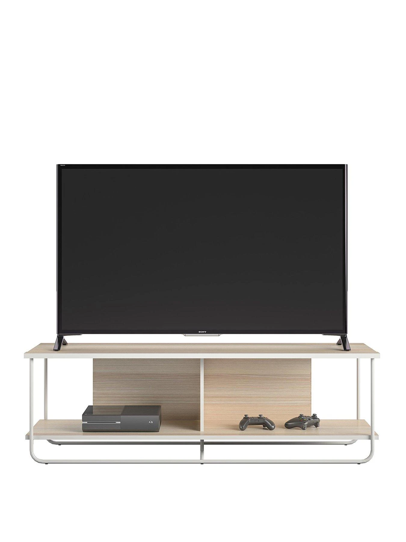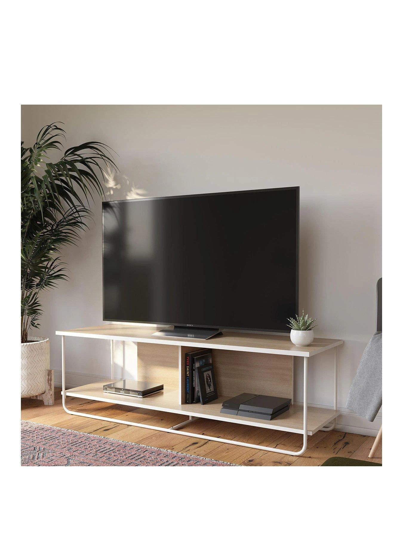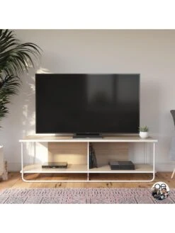 This TV stand from Queer Eye’s Dante collection creates a modern space for your audio-visual set-up. The cool curved metal frame provides ample support and has its looks enhanced with a white powder coated finish.