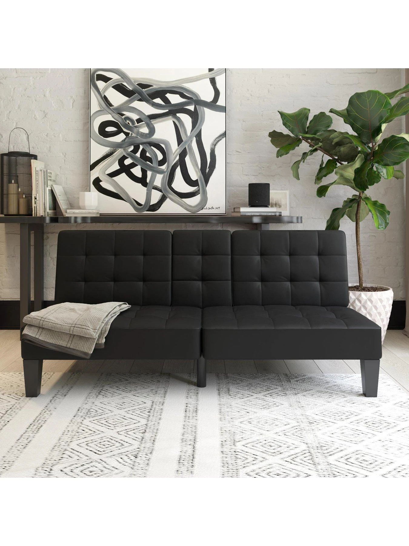 Queer Eye QE Adalynn Convertible Faux Leather Futon in Black