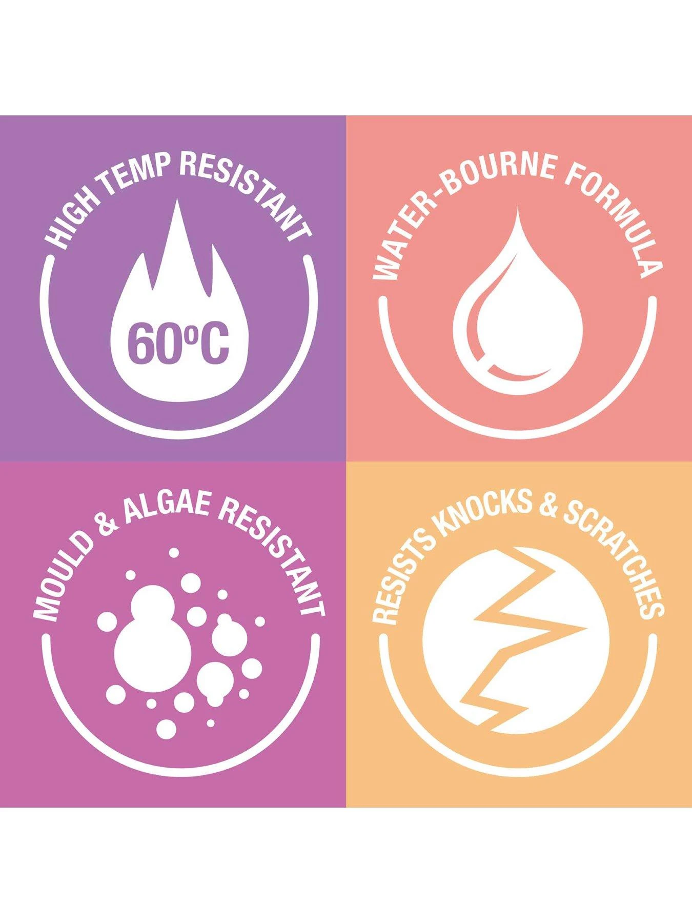 It’s made to offer exceptional coverage and is specially formulated to stand up to the changing temperatures of your heating system, up to 60 degrees Celsius. Easy to apply with a brush or a roller, the durable blend stands the test of time without yellowing and is also resistant to mould.