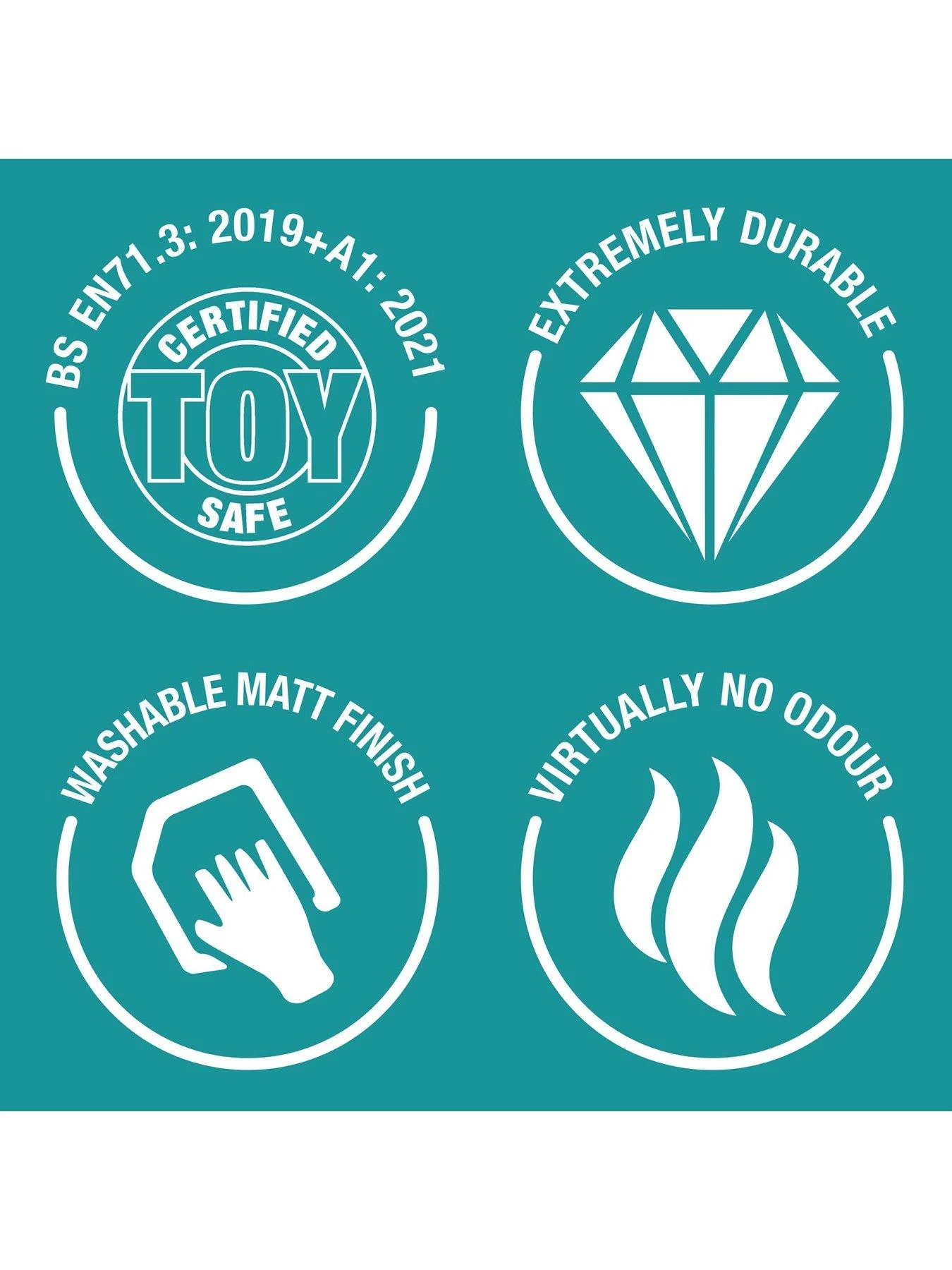 The matt finish ensures the bright hue is full of charm and personality – try uplifting a wooden dining table and contrasting your chairs in a different colour, or use it to beautify a bookcase – and it’s also washable, so it’ll stand up to sticky fingers, shoe scuffs and stray crayon scribbles.