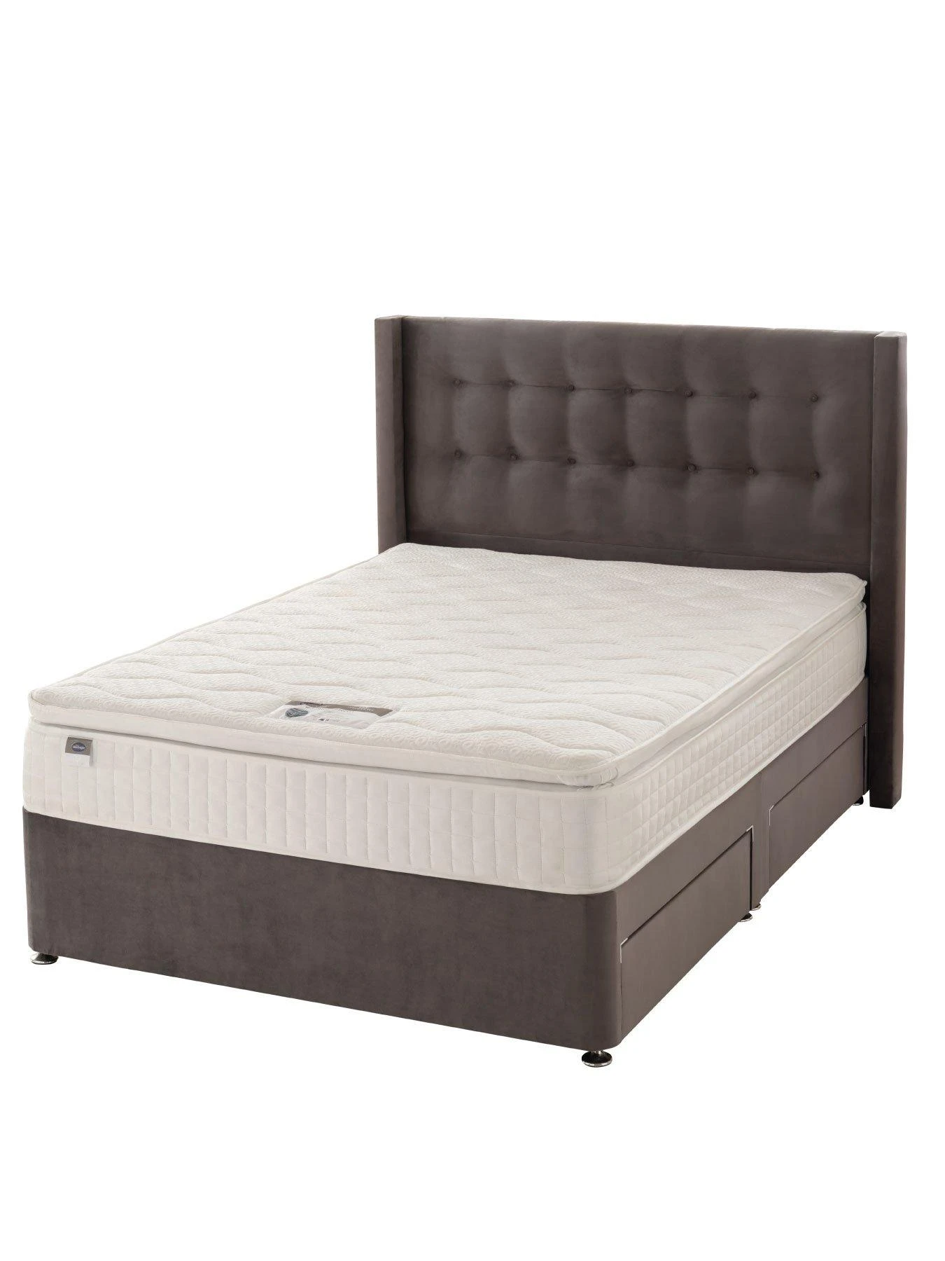 Silentnight Isla Velvet 1000 Pocket Pillowtop Divan Bed with Headboard and Storage Options in Double, King and Super King Sizes; With Storage or Without
