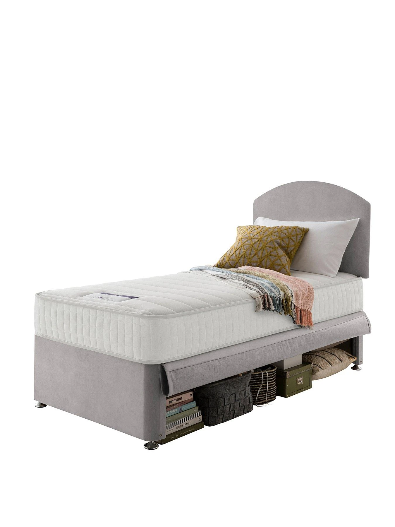 Silentnight Kids Maxi Store Velvet Divan Bed Set, Sprung Mattress and Headboard included – Velvet Silver