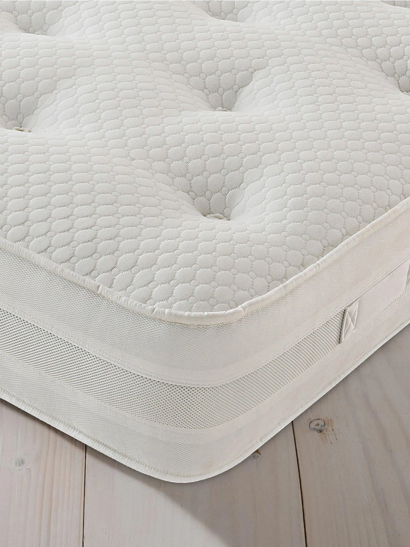 This mattress is hand tufted for enhanced durability and great back support. Featuring Comfort Fibre™ layers, chosen for additional comfort without compromising the planet – as it’s made using recycled plastic bottles – which also allows airflow for a more breathable environment as you sleep. Complete with Allergy UK approved treatment designed to reduce moisture and dustmite allergens for a drier, fresher and healthier mattress. This mattress is double sided and should be flipped regularly for extra longevity.
