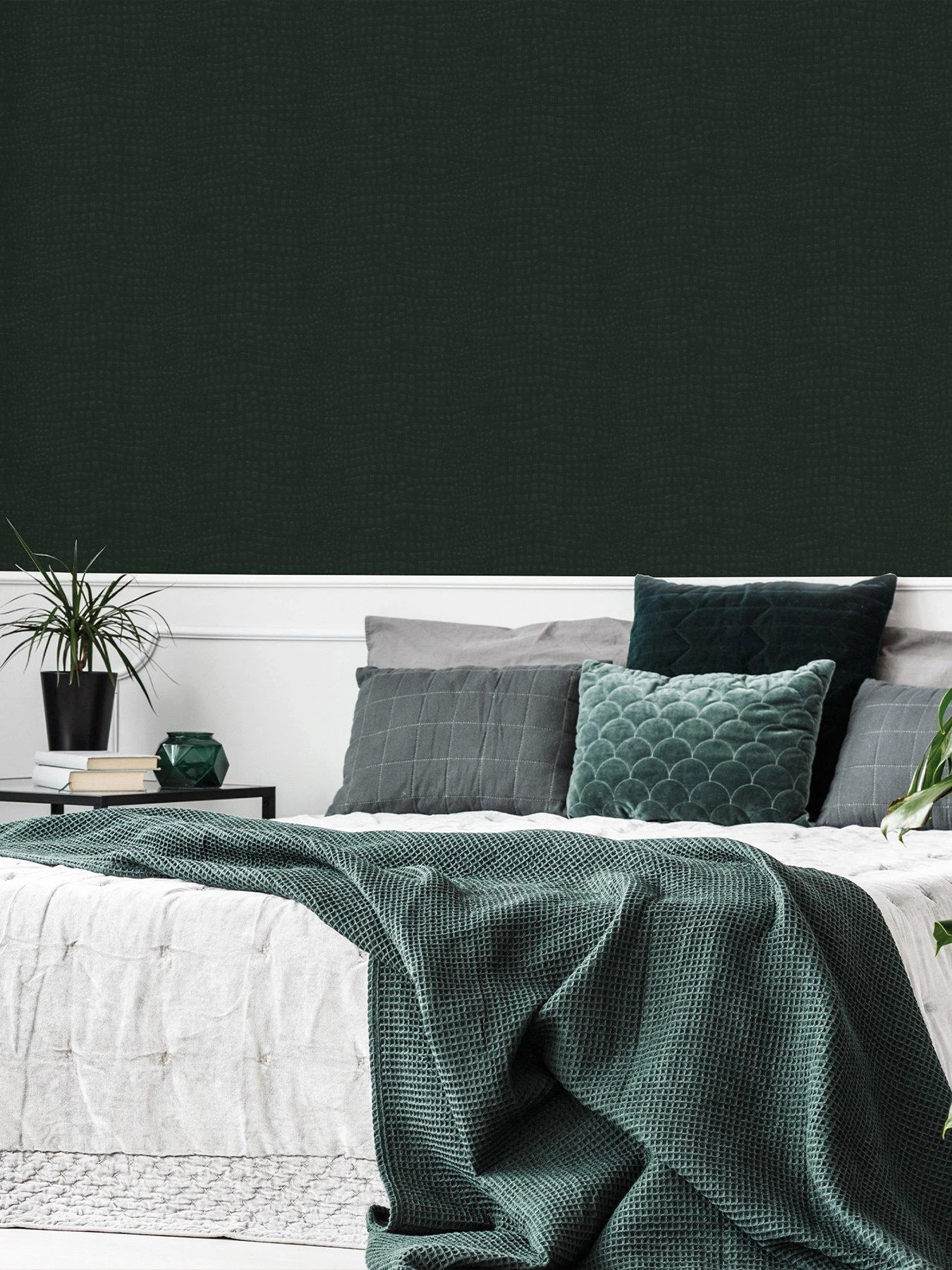 The Crocodile Grenn wallpaper uses a dramatic deep colour palette combined with an incredibly chic texture. It is the perfect choice to bring an element of glamour to your home