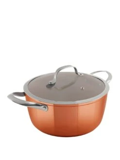 A stylish copper mirror finish puts contemporary style into your kitchen, while the non-stick ceramic coating to the interior results in effortless release of food, fuss-free washing up and allows you to cook healthier meals by using little-to-no oil.