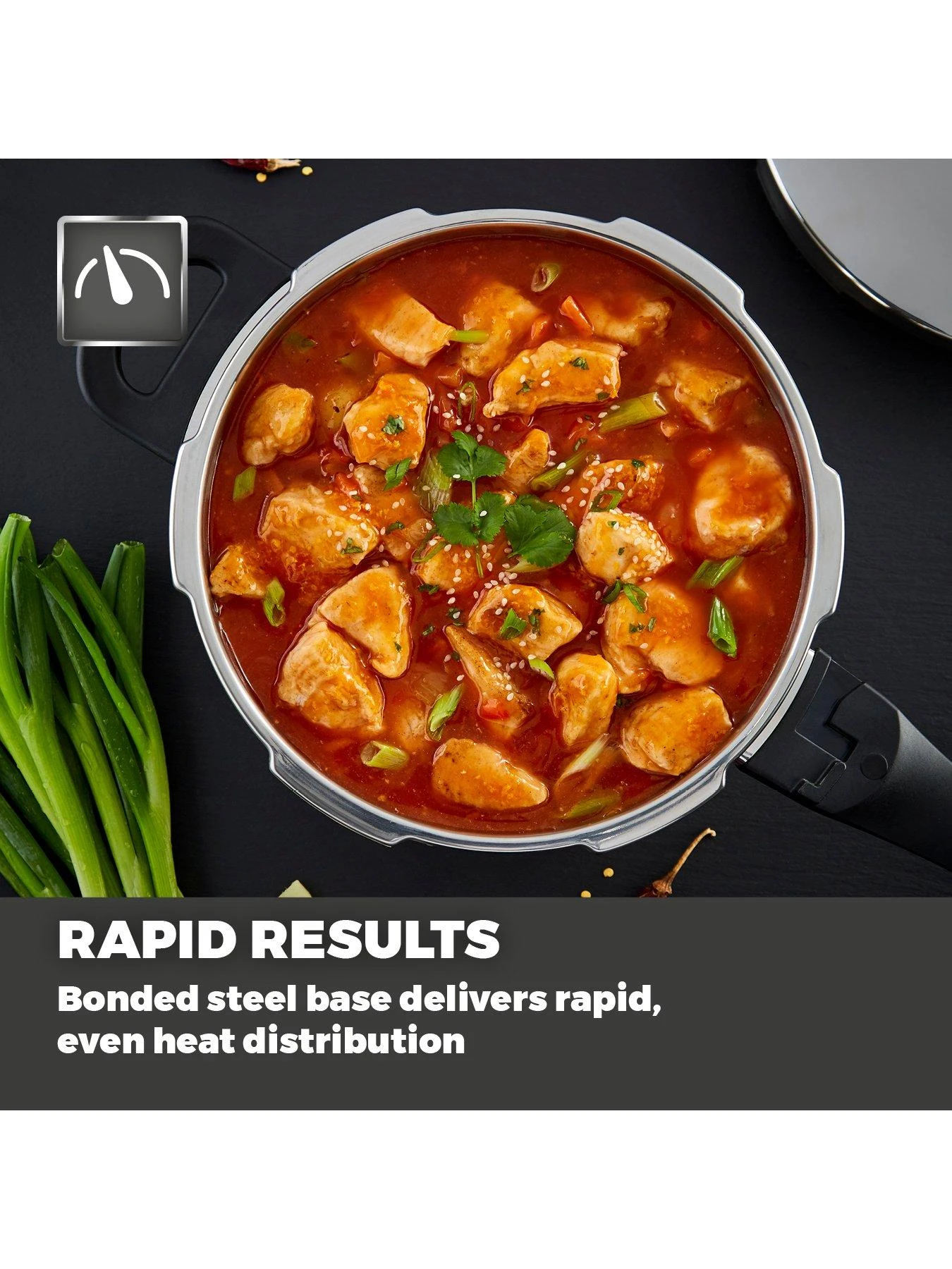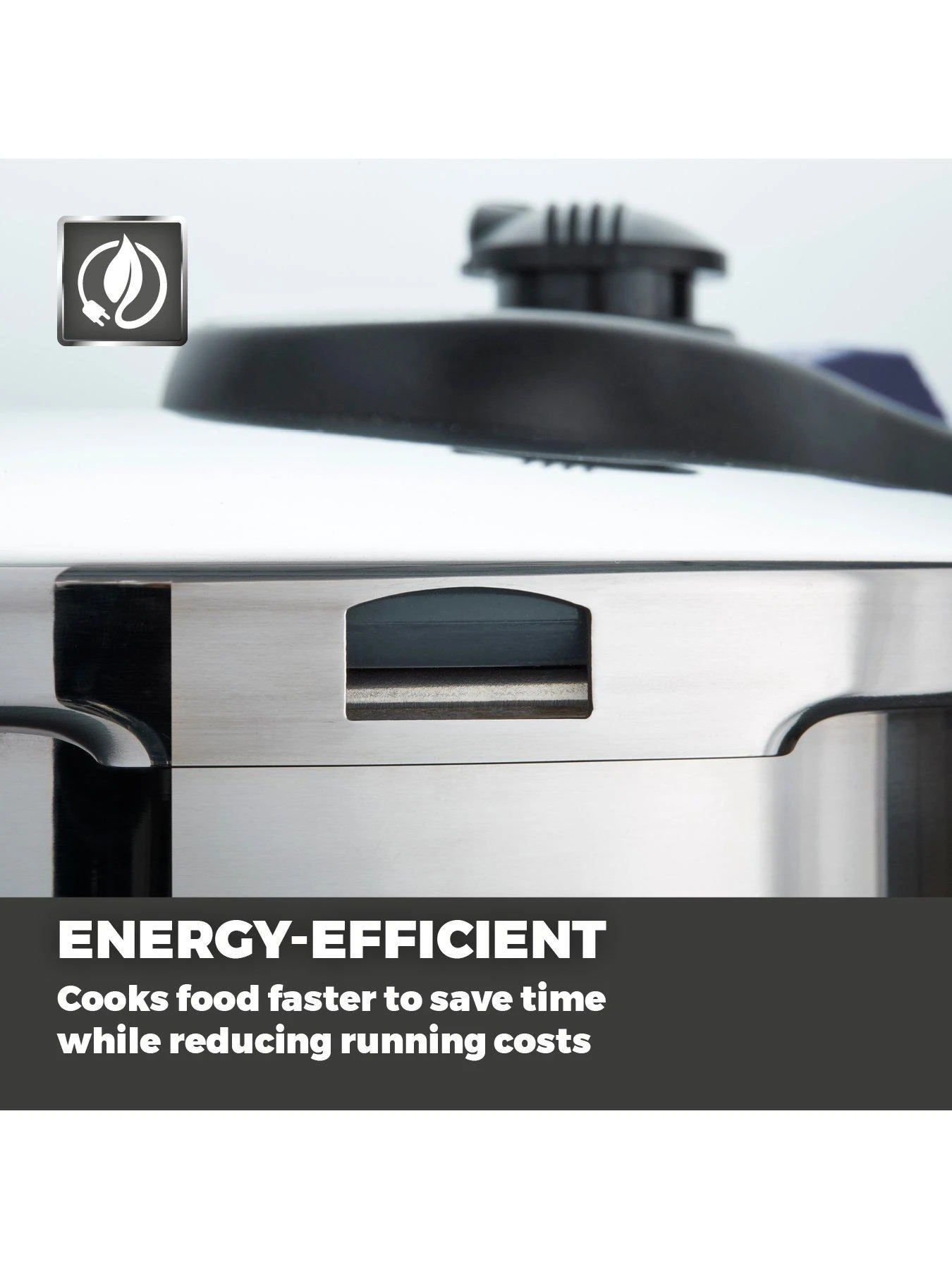 It uses the build-up of heat and steam to cook your food much quicker than traditional methods. Not only does this help to conserve energy when compared to the hob or oven, but because it uses an airtight lid, it also helps to retain the nutrients in your delicious dishes. A 4-litre capacity means this pressure cooker can fit around 3-5 portions, so it’s perfect for smaller families, as well as those who like to meal prep in advance.