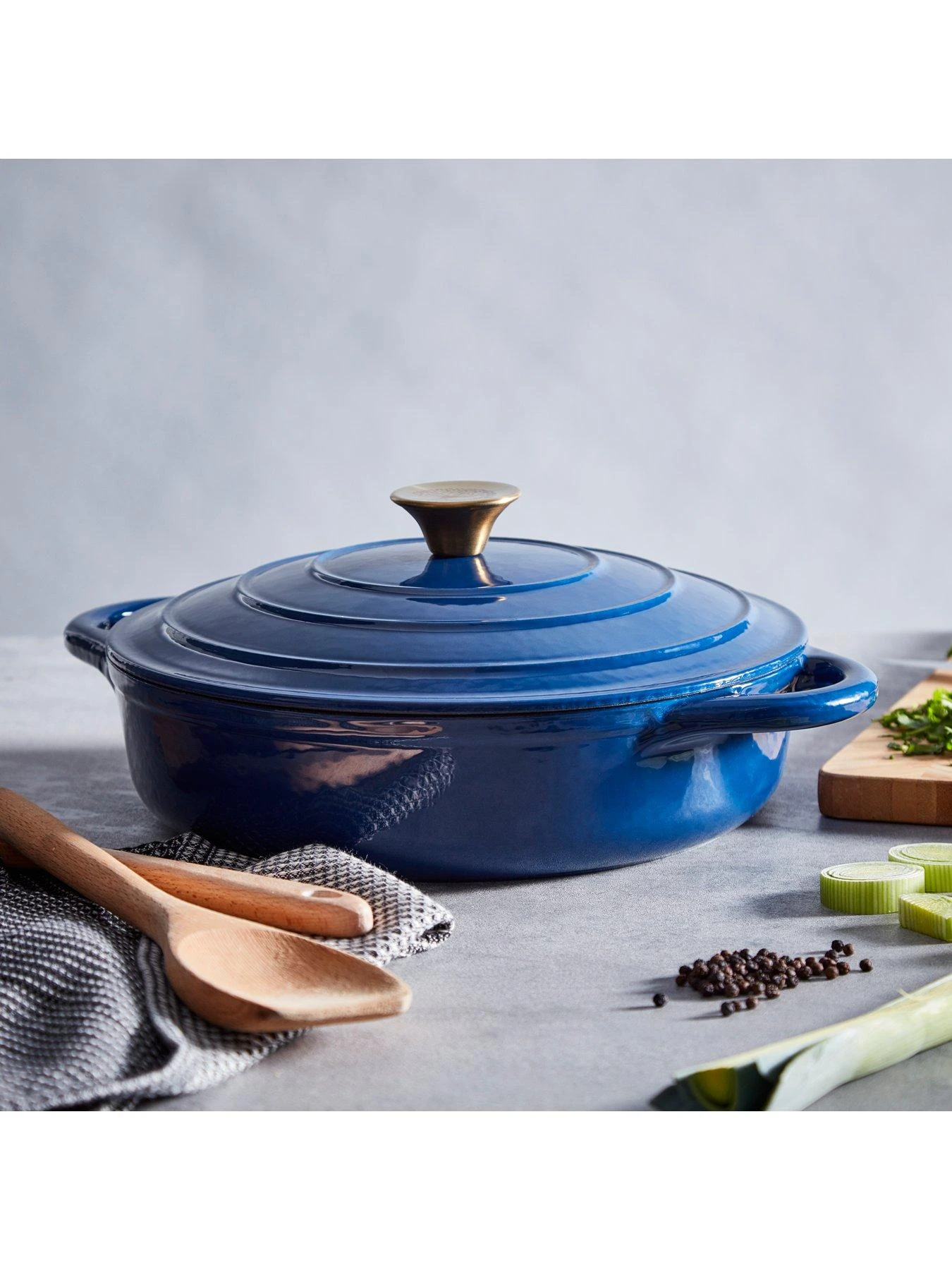Made for more than just casseroles, the shallow design shape and 28 cm diameter means there’s plenty of room for family-filling midweek curries, along with colourful paellas, or even trying your hand at fruit-filled crumbles. A cast iron construction ensures heat spreads consistently throughout the pan and is retained for much longer than aluminium or stainless steel pots and pans.