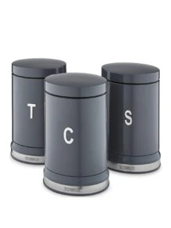 - This set of 3 canisters with a 1.3 litre capacity each is perfect for storing up to 50 teabags, 1kg of coffee and 1kg of sugar neatly.