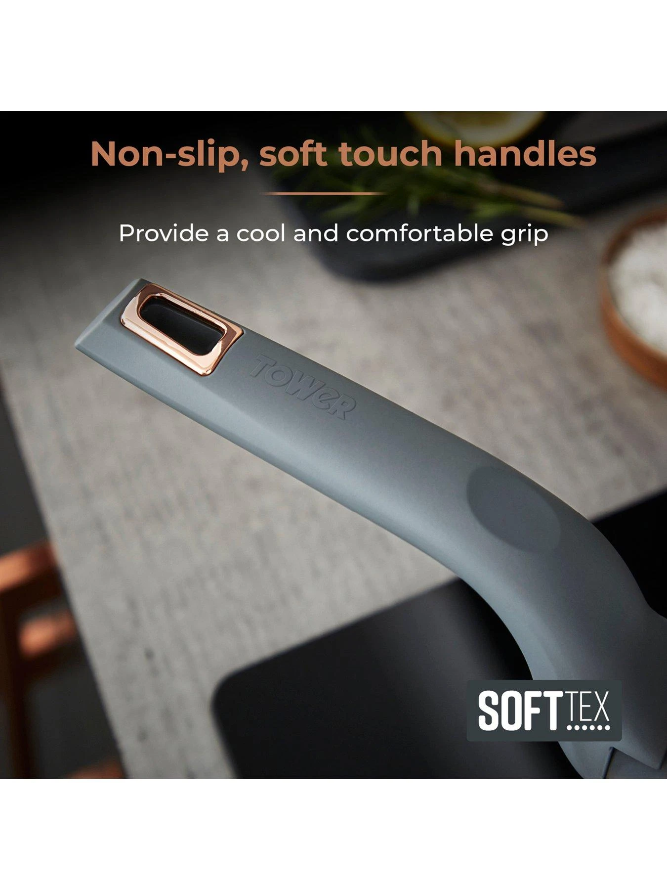 - SOFTTEX HANDLES: Each pan features softtex handles in an elegant grey and rose gold finish, for maximum comfort and style when cooking