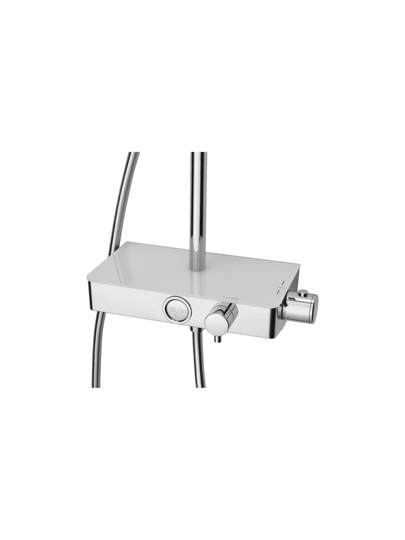 - Thermostatic temperature control – Maintains consistent, comfortable showering temperature