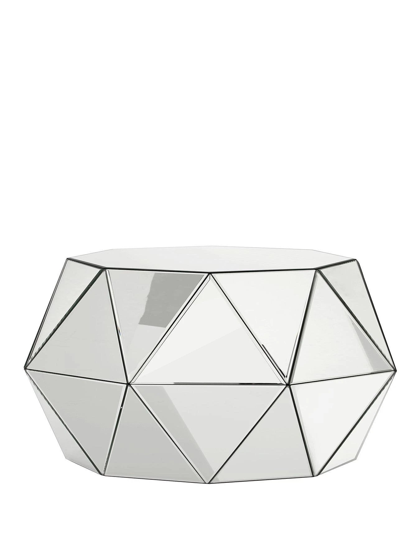 This striking coffee table will add shine and depth to your space. Covered in a series of silver triangular mirrored panels that catch the light at different angles, it will create a bold statement in the centre of your room – ideal for sitting a tray of drinks the next time friends or family come to visit.