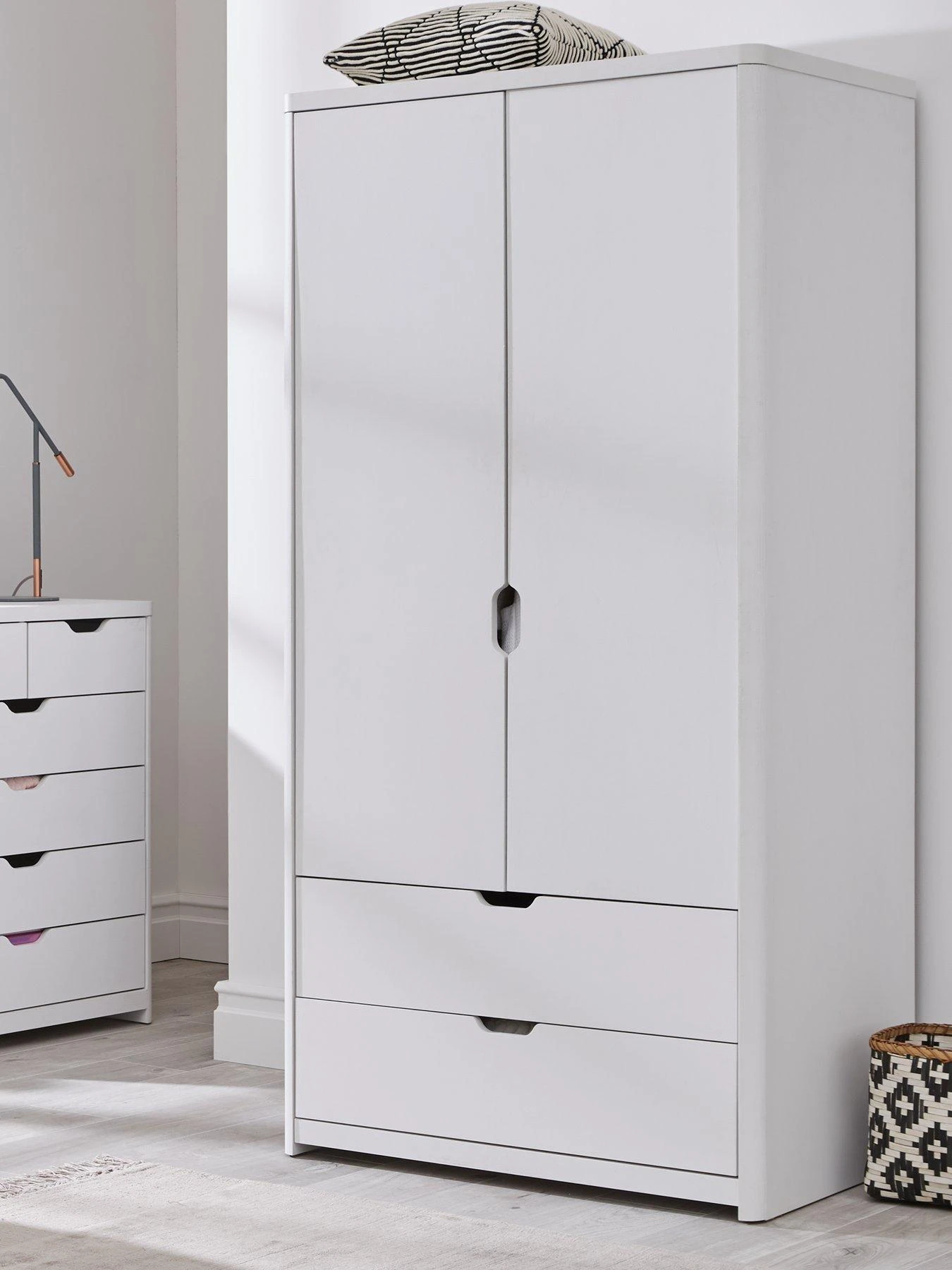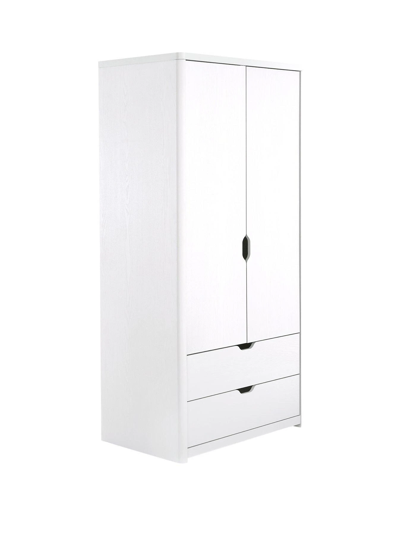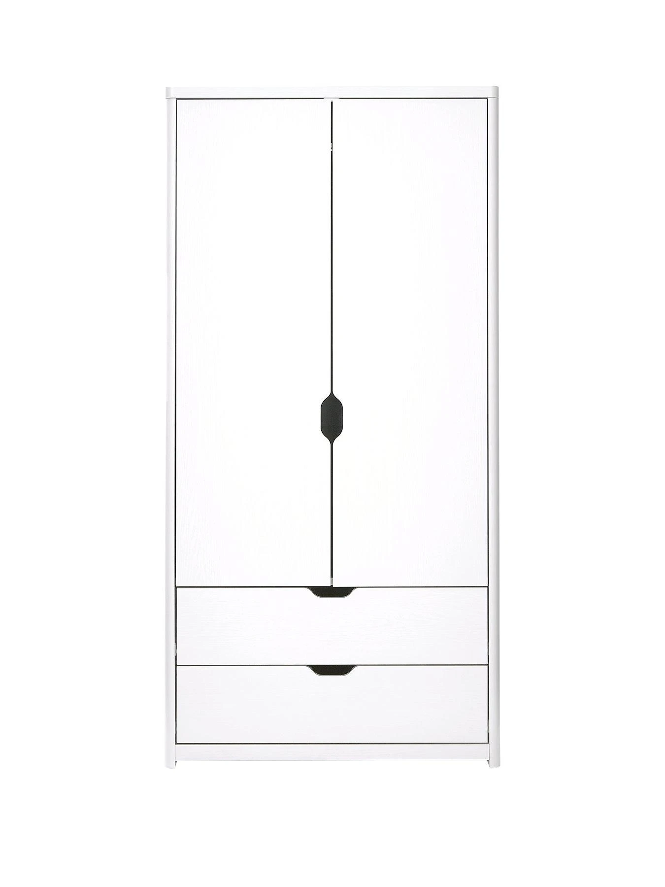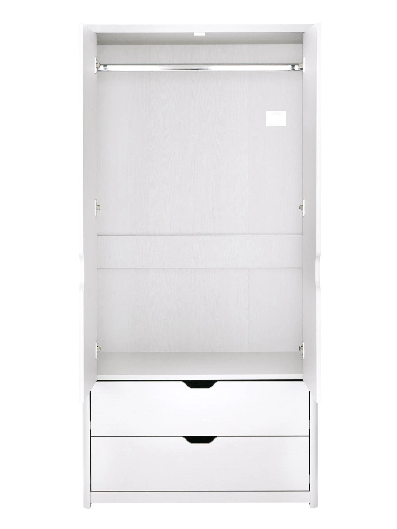 2 doors and drawer fronts boast cut-out handles for a modern finish, and it contains a metal hanging rail where they can store all their fashion faves. The drawers open and close smoothly (and quietly!) on easy-glide metal runners.