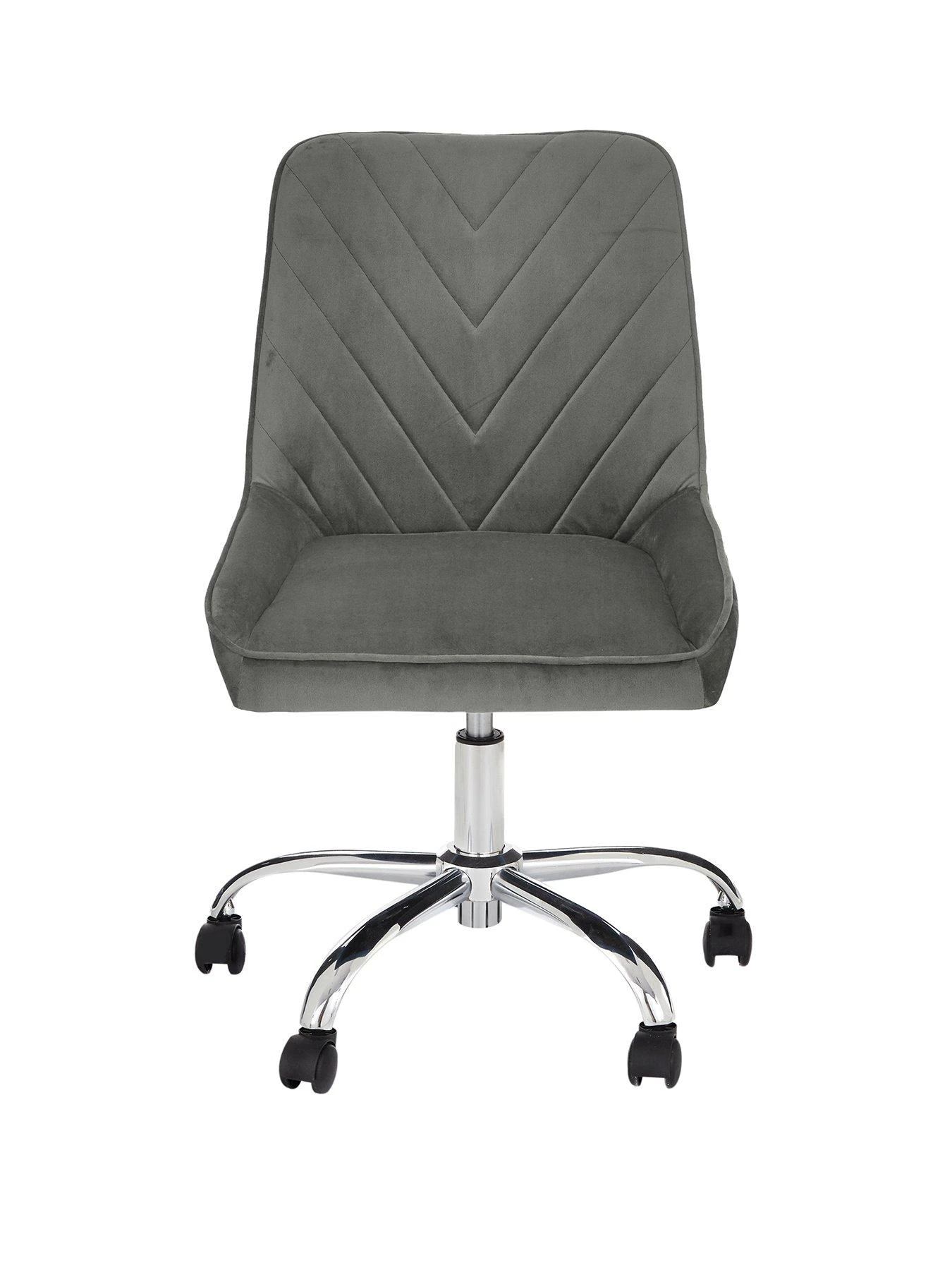 This stylish office chair will add style and comfort to your working from home days. Wrapped in a super soft fabric that comes in a contemporary shade, the back is highlighted by chevron detail, while the angled sides of the seat keep you comfortably positioned. Sitting on a chrome base with castors for easy movement, it’s height adjustable.