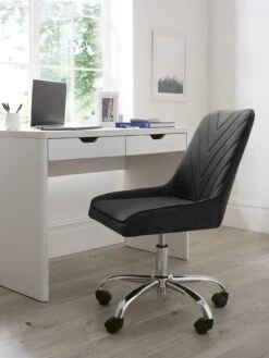 This stylish office chair will add style and comfort to your working from home days. Wrapped in a super soft fabric that comes in a contemporary black shade, the back is highlighted by chevron detail, while the angled sides of the seat keep you comfortably positioned. Sitting on a chrome base with castors for easy movement, it’s height adjustable.