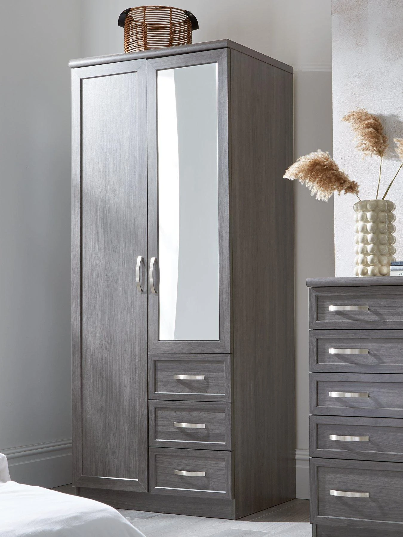 One door is mirrored to increase the depth and light in your bedroom, while inside you’ll find a hanging rail and high shelf. Extra storage comes from the three drawers, and it’s thoughtfully detailed with easy-glide metal drawer runners for a smooth action, plus adjustable metal hinges for easy alignment on uneven floors.