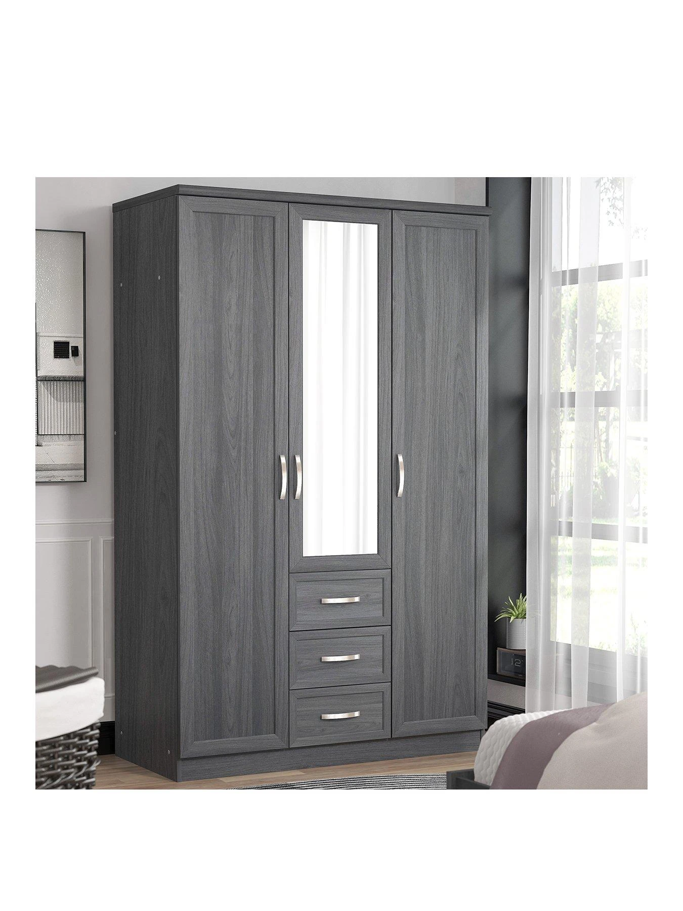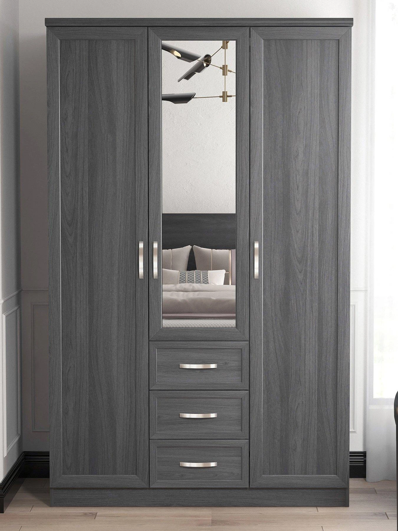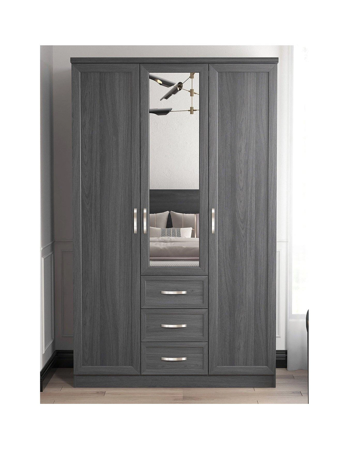 Camberley 3 Door, 3 Drawer Mirrored Wardrobe in Dark Oak Effect, White or Oak Effect.
