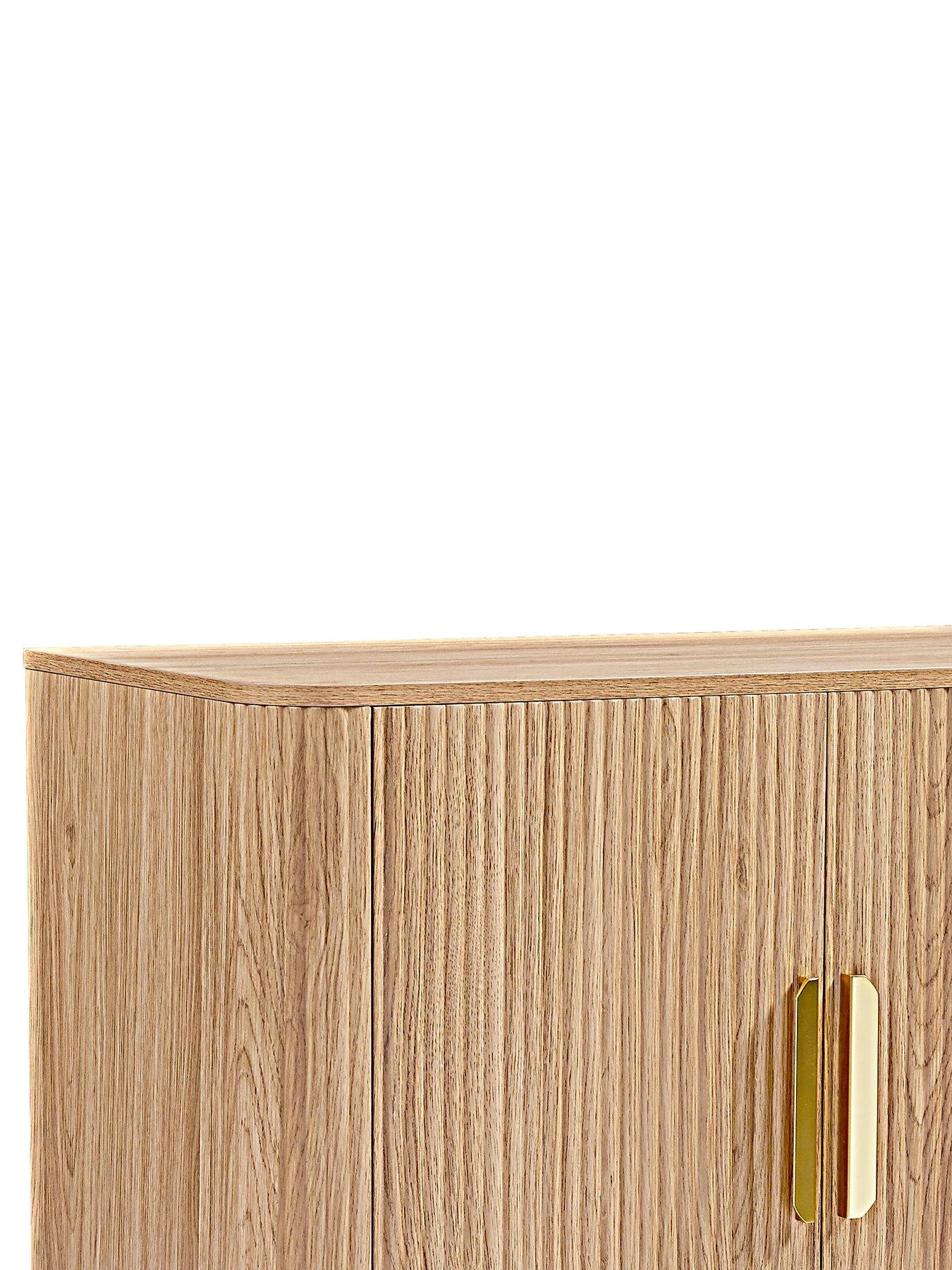 Curved corners echo the smoothness of the rounded ribs, and it’s detailed withĀ large gold coloured handles and Scandi-style splayedĀ feet. Inside there’s adjustable shelving to help maximise the space available.