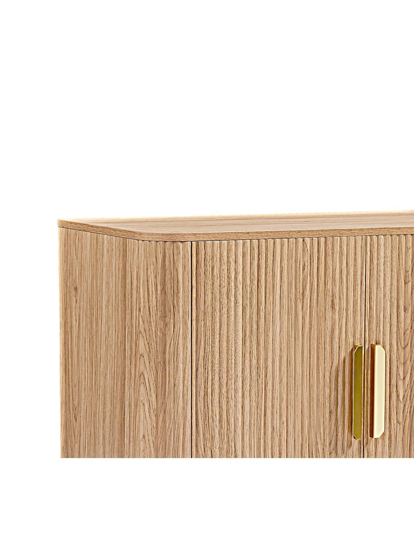 Update your living space in the style of the past with this compact sideboard from the Carina collection. Measuring 90 cm in width so it will neatly in smaller rooms, its 50s inspired design comes from a stunning ribbed finish that’s wrapped in a realistically grained oak-effect.