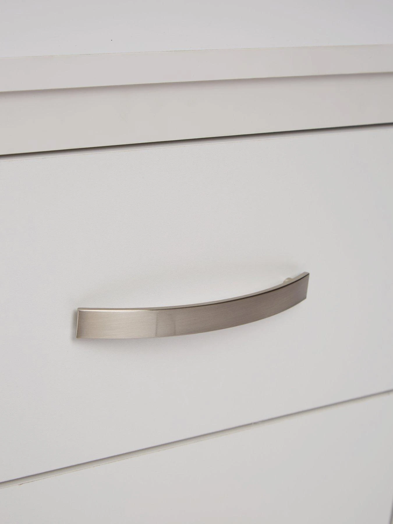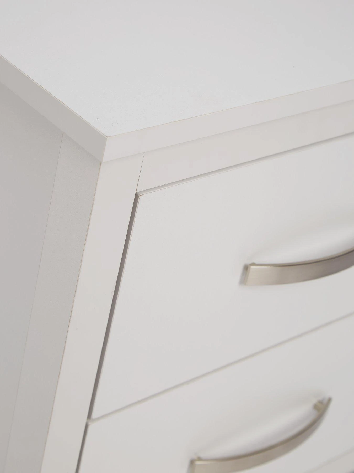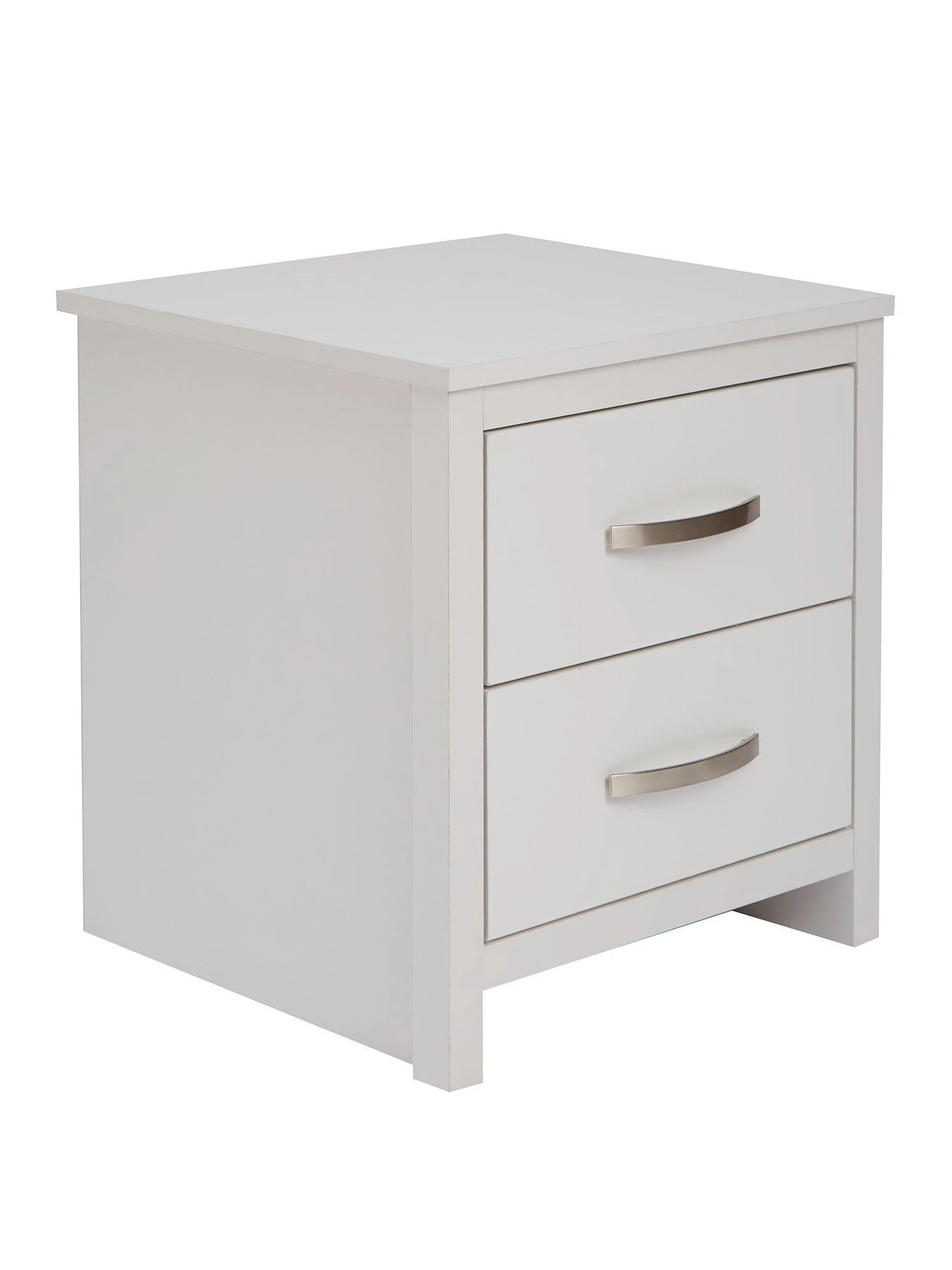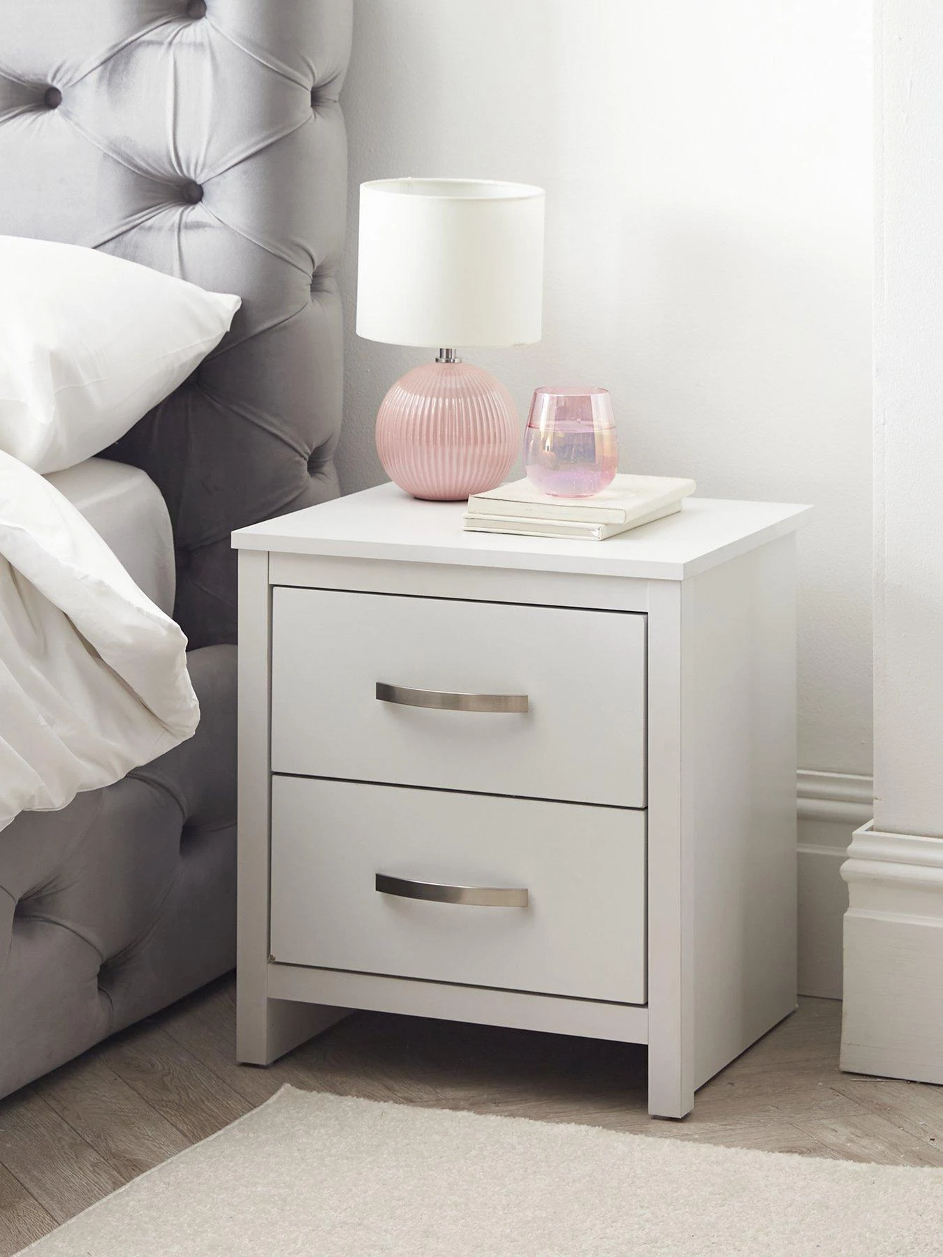 This bedside chest from the Ely collection will add a modern storage solution to the edge of your bed. Clean lines and chunky sides are highlighted by the choice of smooth grey or white hues that can be matched to a range of colour schemes.