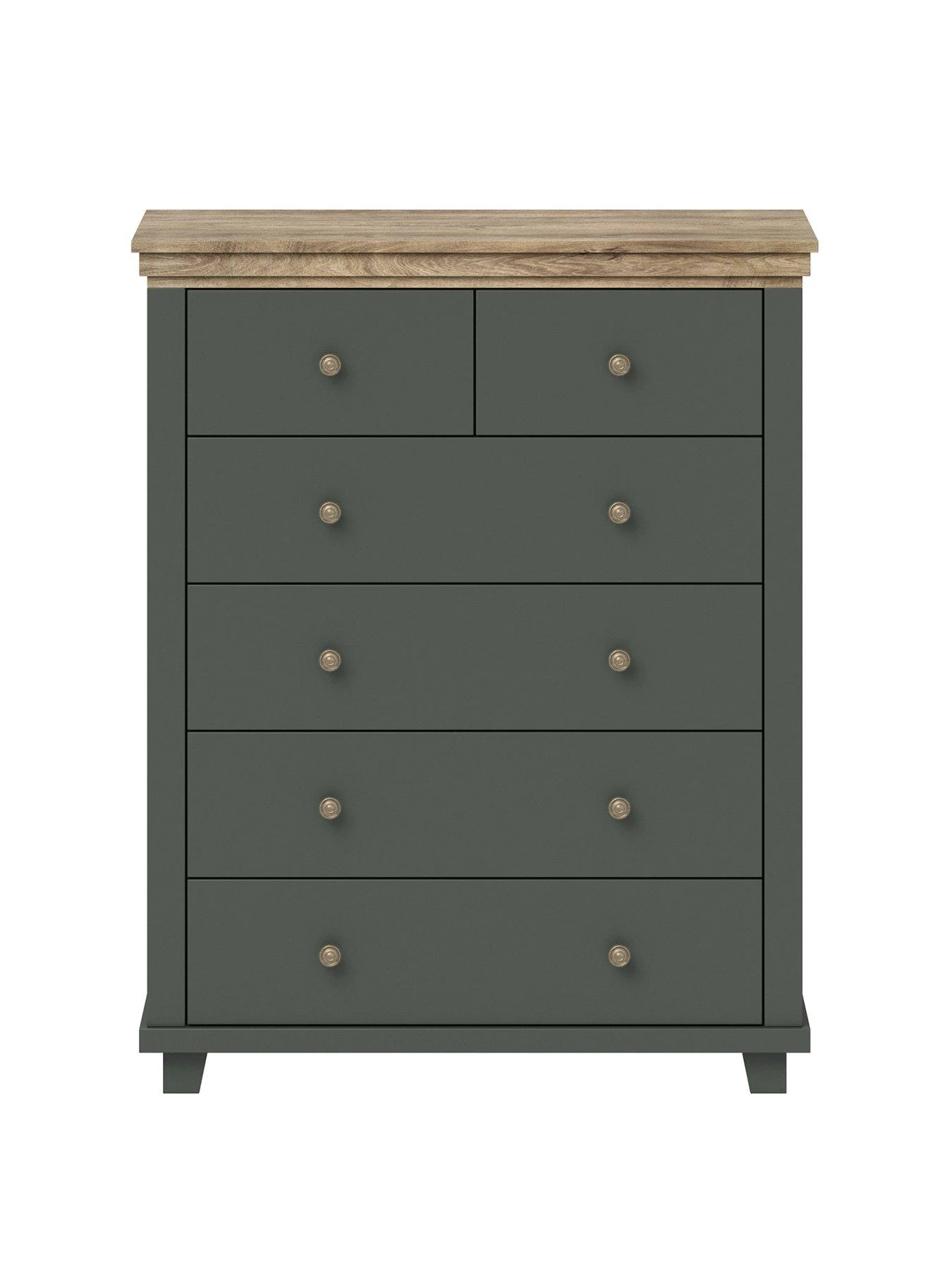 Evora 4 + 2 Chest of Drawers in White/Oak Effect or Green/Oak Effect