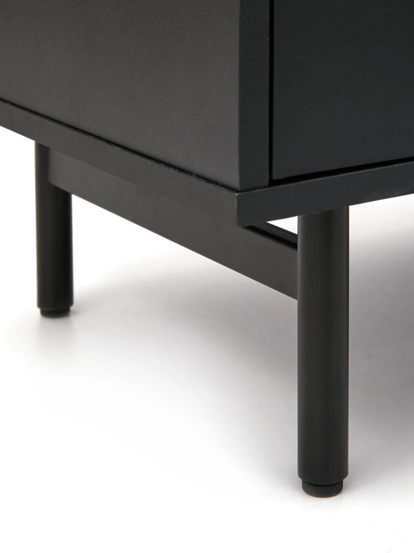 This chest of drawers takes loft living to the next level with slimline cylindrical legs in a matching black, as well as five drawers which boast push-to-open mechanisms. This means there is no need for handles, ensuring nothing interrupts the simplicity of the silhouette.