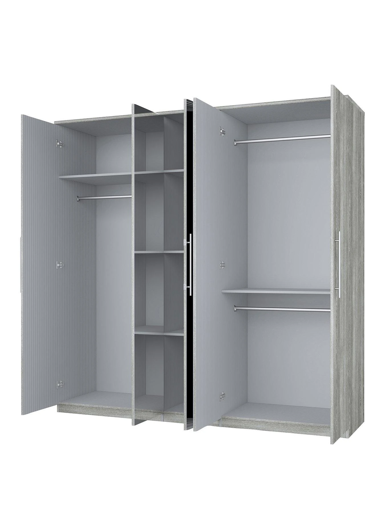 Prague 5-door Mirrored Wardrobe in White Ash-Effect, Oak-Effect, Walnut-Effect, Grey Ash-Effect or Black Ash-Effect – from our great value Home Essentials range – FSC® Certified